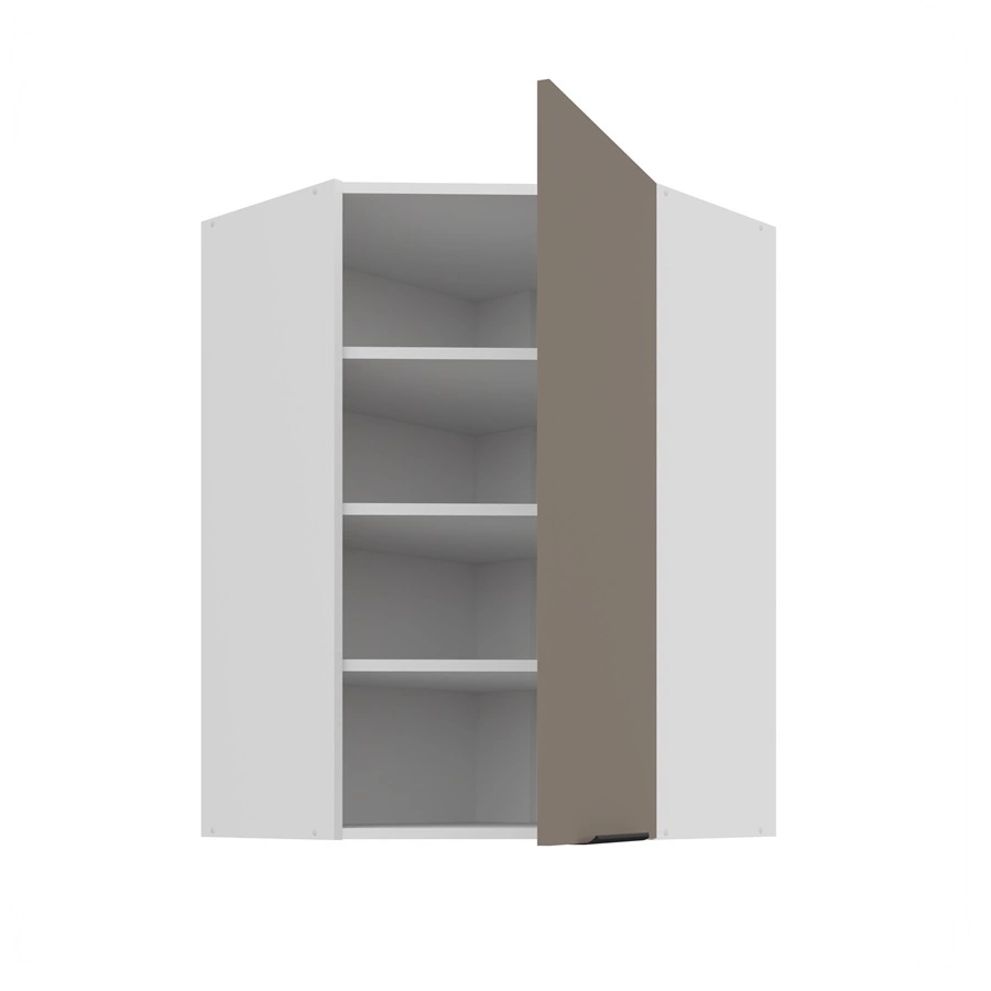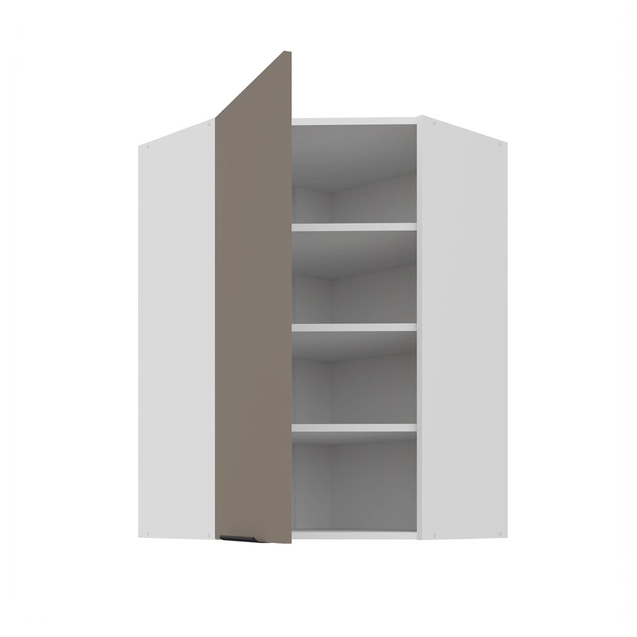 Szafka kuchenna narożna wisząca Fiuggi Wh w kolorze biały / sandgrau należy do kategorii mebli kuchennych modułowych, z których można utworzyć dowolne zestawy.