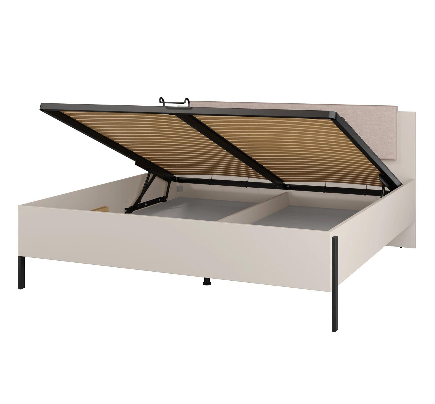 Łóżko Jukon S 180x200 cm beżowe z pojemnikiem nowoczesny styl łóżko do sypialni na metalowych czarnych nogach z tapicerowanym zagłówkiem