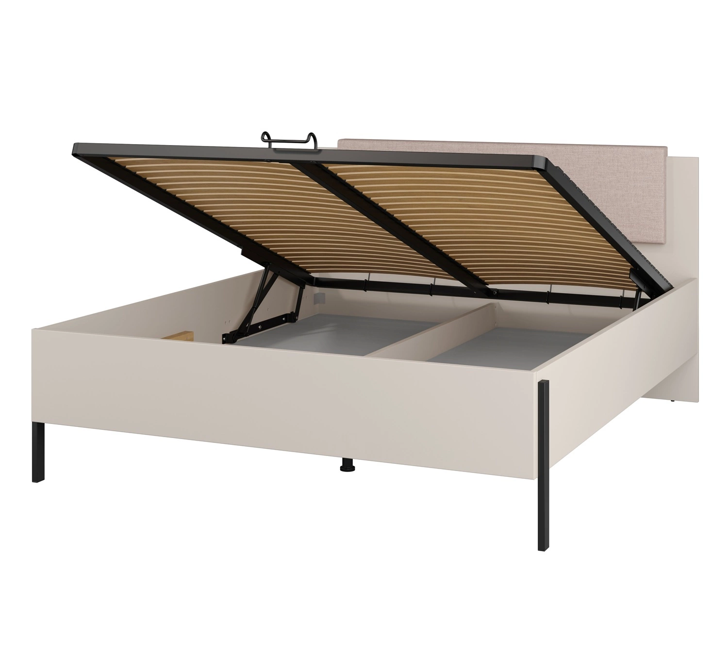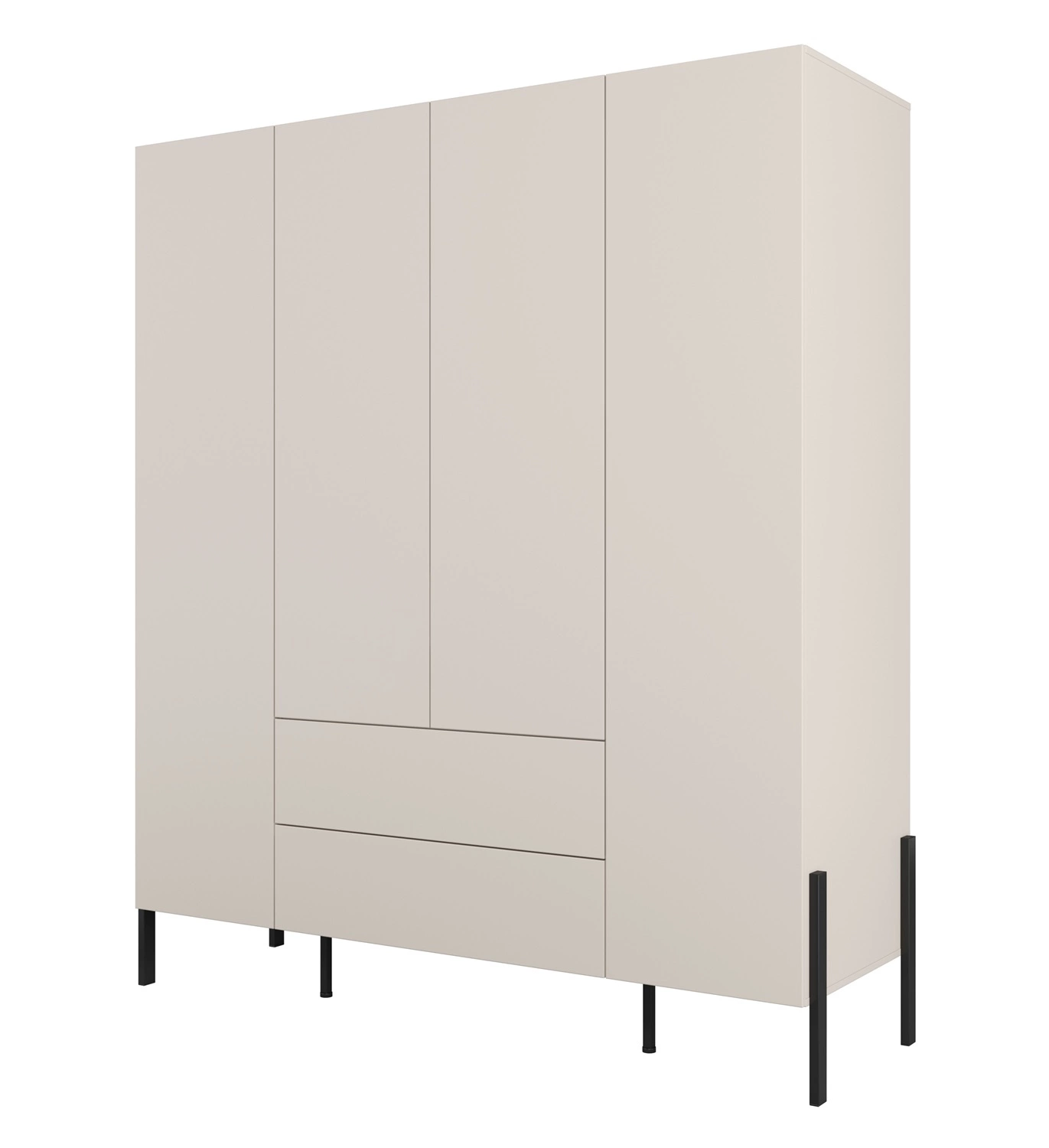 Zestaw mebli do sypialni Jukon S beżowy elegancka forma mebli w nowoczesnym stylu system otwierania push to open metalowe czarne nogi