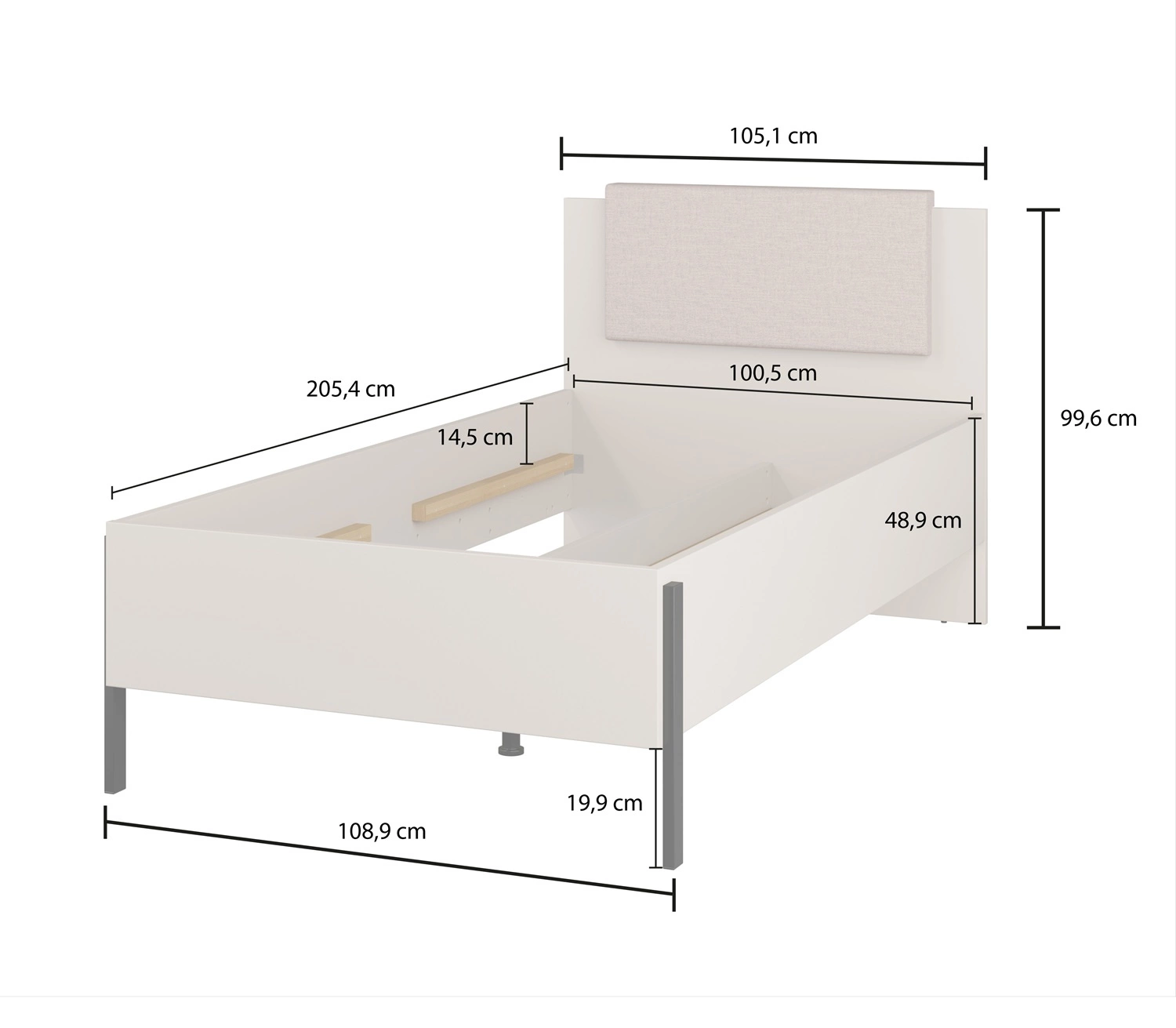 Meble zostały wykonane z wysokiej jakości płyty laminowanej o grubości 15mm, która charakteryzuje się odpornością na wpływ czynników zewnętrznych takich jak obicia, uderzenia i niefortunne zadrapania. Precyzyjne wykończenie i dbałość o detale sprawiają, że zestaw mebli do sypialni Jukon S zachowa swój piękny wygląd na wiele lat, nie tracąc przy tym na funkcjonalności. Łóżko wyposażone jest w stabilny metalowy stelaż oraz praktyczny pojemnik na pościel. Łatwe i lekkie otwieranie ramy z materacem zapewniają podnośniki gazowe. Częściowo tapicerowany zagłówek wykonany z miękkiej i miłej w dotyku tkaniny w kolorze beżowym to element, który przyciąga wzrok. Szafa Jukon S dzieli się na część z drążkiem na ubrania wiszące i część z półkami.