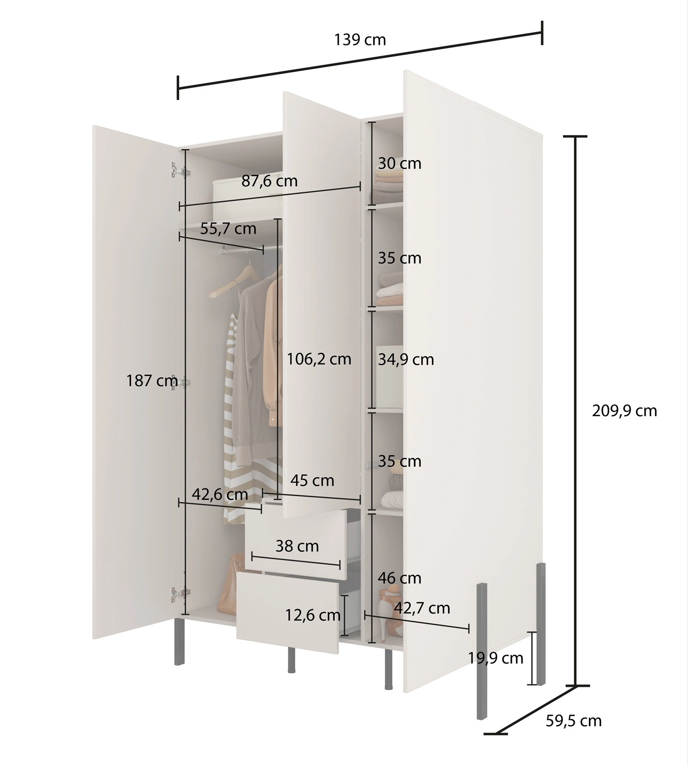 Zestaw mebli do sypialni Jukon S zostały zaprojektowane w sposób funkcjonalny i użytkowy, oferując dużo miejsca do przechowywania. Pojemne szuflady wysuwane na prowadnicach rolkowych pomieszczą wszystkie rzeczy oraz niezbędne akcesoria. Dodatkową zaletą mebli Jukon S jest bezuchwytowy system otwierania drzwi oraz szuflad push to open. Zastosowany system umożliwi wygodne i komfortowe korzystanie z szafy. Subtelny beżowy nada pomieszczeniu lekkości i przytulnego klimatu, dzięki czemu meble Jukon S świetnie sprawdzą się jako zestaw mebli do pokoju dziecka lub zestaw mebli do pokoju nastolatka.