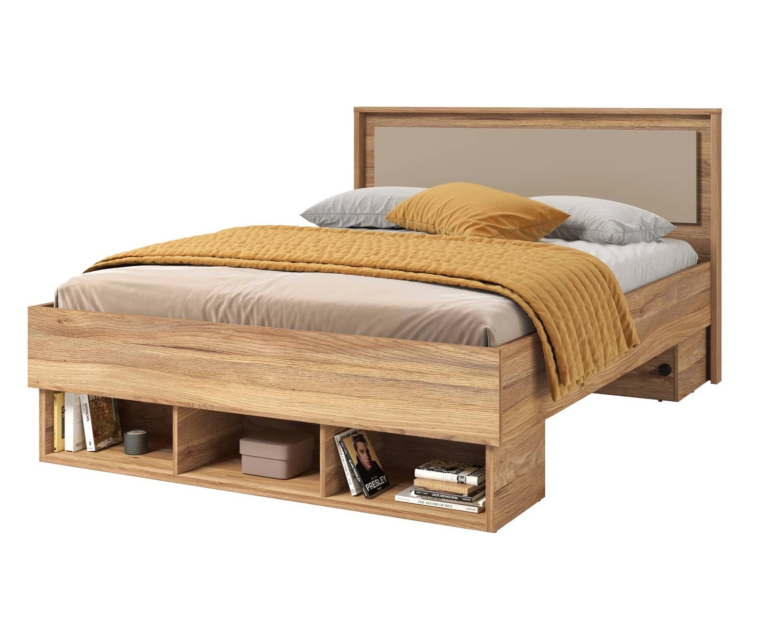Łóżko Impressio gwarantuje komfortowe i bezproblemowe korzystanie oraz trwałość całego mebla przez wiele lat użytkowania. Połączenie ciepłego dębu z modnym beżowym sprawia, że łóżko świetnie sprawdzi się jako łóżko do sypialni lub łóżko młodzieżowe w pokoju nastolatka.