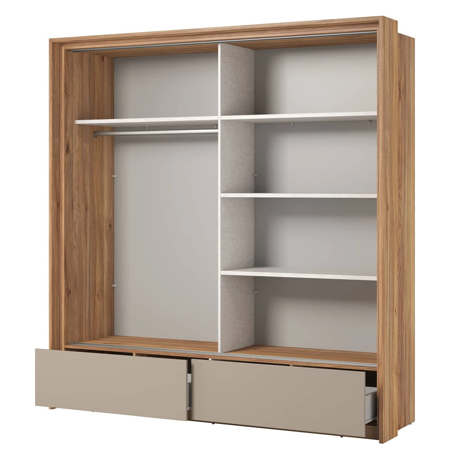 Szafa przesuwna Impressio 209 cm w kolorze dąb mauvella / ciemny beżowy to przepis na nowoczesne oraz funkcjonalne wnętrze w Twoim domu!