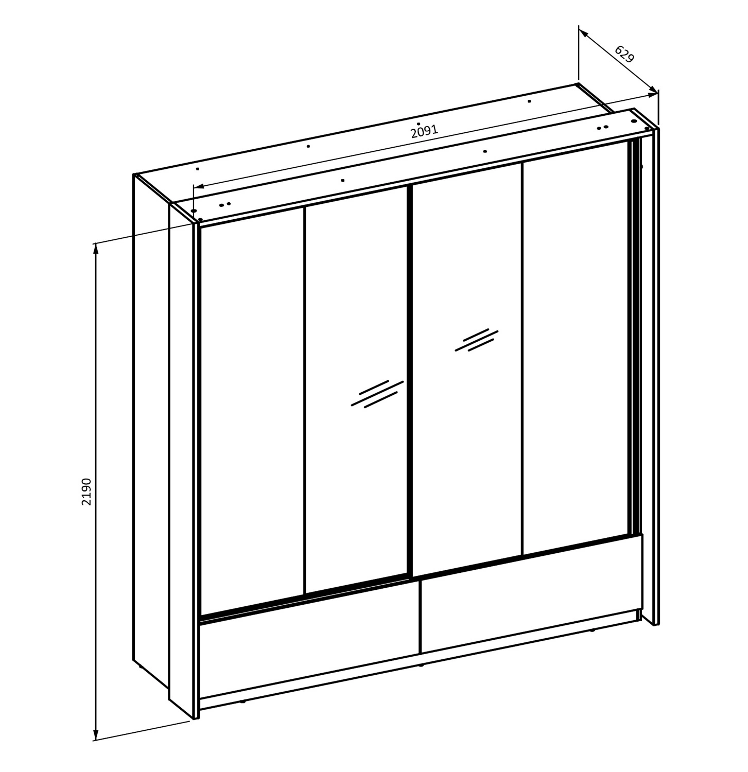 Mebel skonstruowany jest z 2 drzwi oraz 2 szuflad wysuwanych na prowadnicach rolkowych. Szafa przesuwna gwarantuje komfortowe i bezproblemowe korzystanie oraz trwałość całego mebla przez wiele lat użytkowania. Dzięki lekkiej formie oraz uniwersalności szafa na ubrania z powodzeniem sprawdzi się jako szafa do sypialni, jako szafa do przedpokoju lub szafa do pokoju dziecięcego. Szafa przesuwna doskonale sprawdzi się także w roli garderoby do przedpokoju. Szafa z lustrem optycznie powiększy pomieszczenie.