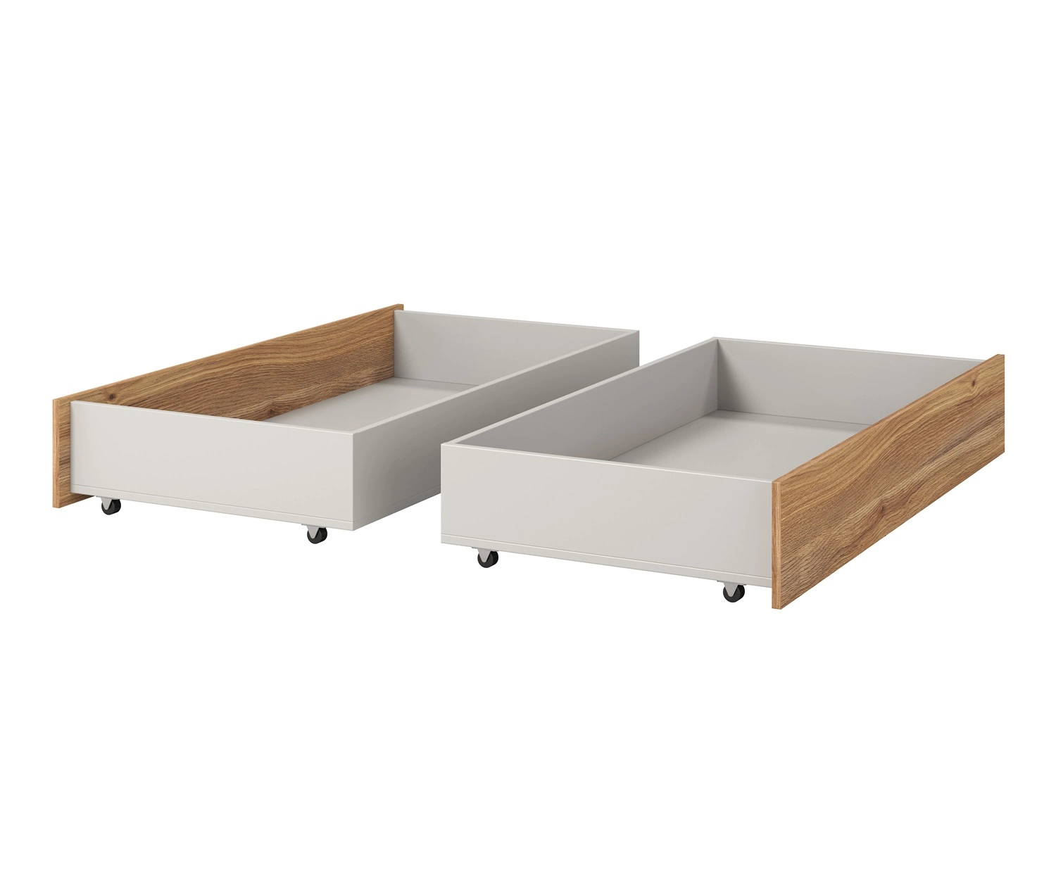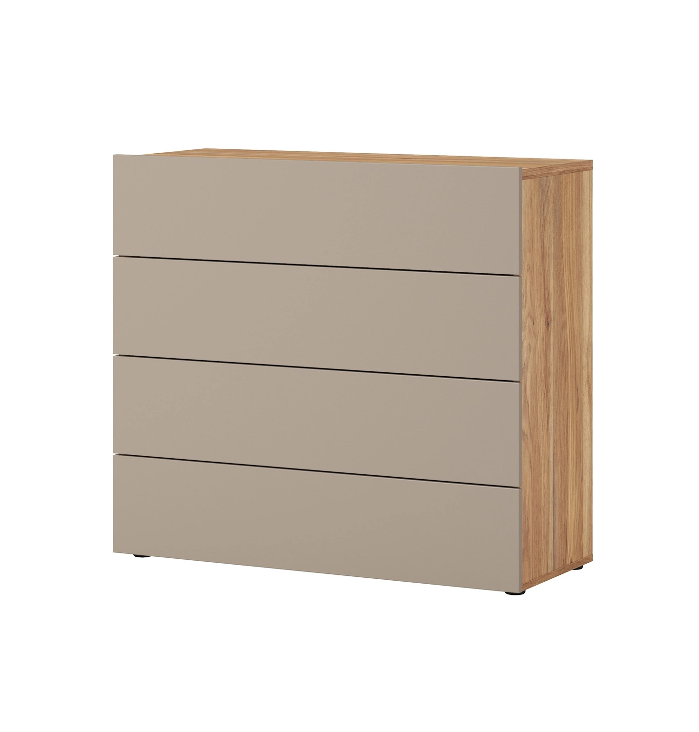 Zestaw mebli do sypialni Impressio zostały zaprojektowane w sposób funkcjonalny i użytkowy, oferując dużo miejsca do przechowywania. Pojemne szuflady wysuwane na prowadnicach rolkowych pomieszczą wszystkie rzeczy oraz niezbędne akcesoria. Połączenie ciepłego dębu z modnym beżowym sprawia, że meble Impressio świetnie sprawdzą się jako komplet mebli do sypialni lub jako meble do pokoju młodzieżowego.