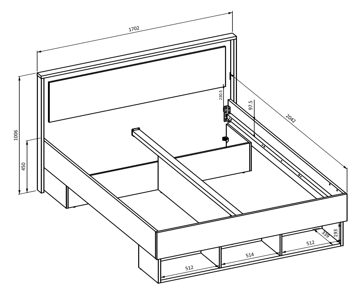 Meble zostały wykonane z wysokiej jakości płyty laminowanej o grubości, która charakteryzuje się odpornością na wpływ czynników zewnętrznych takich jak obicia, uderzenia i niefortunne zadrapania. Precyzyjne wykończenie i dbałość o detale sprawiają, że zestaw mebli do sypialni Impressio zachowa swój piękny wygląd na wiele lat, nie tracąc przy tym na funkcjonalności. Szafa dzieli się na część z drążkiem na ubrania wiszące oraz część z półkami. Pojemne szuflady chowane pod łóżkiem, które zwiększą liczbę miejsc do przechowywania na przykład pościeli. Otwarte półki u podstawy łóżka to dodatkowa przestrzeń na książki, pudełka lub niezbędne akcesoria.