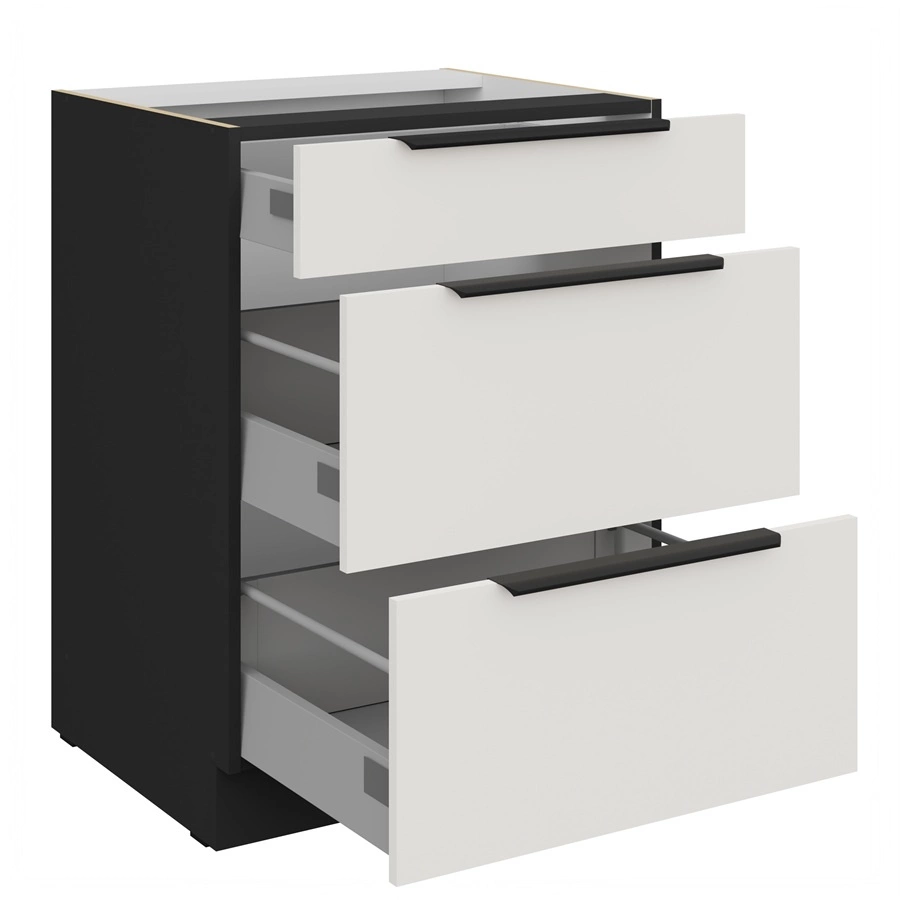 Szafka kuchenna z szufladami 60 cm Corato Bl w kolorze czarny / biały należy do kategorii mebli kuchennych modułowych, z których można utworzyć dowolne zestawy.
