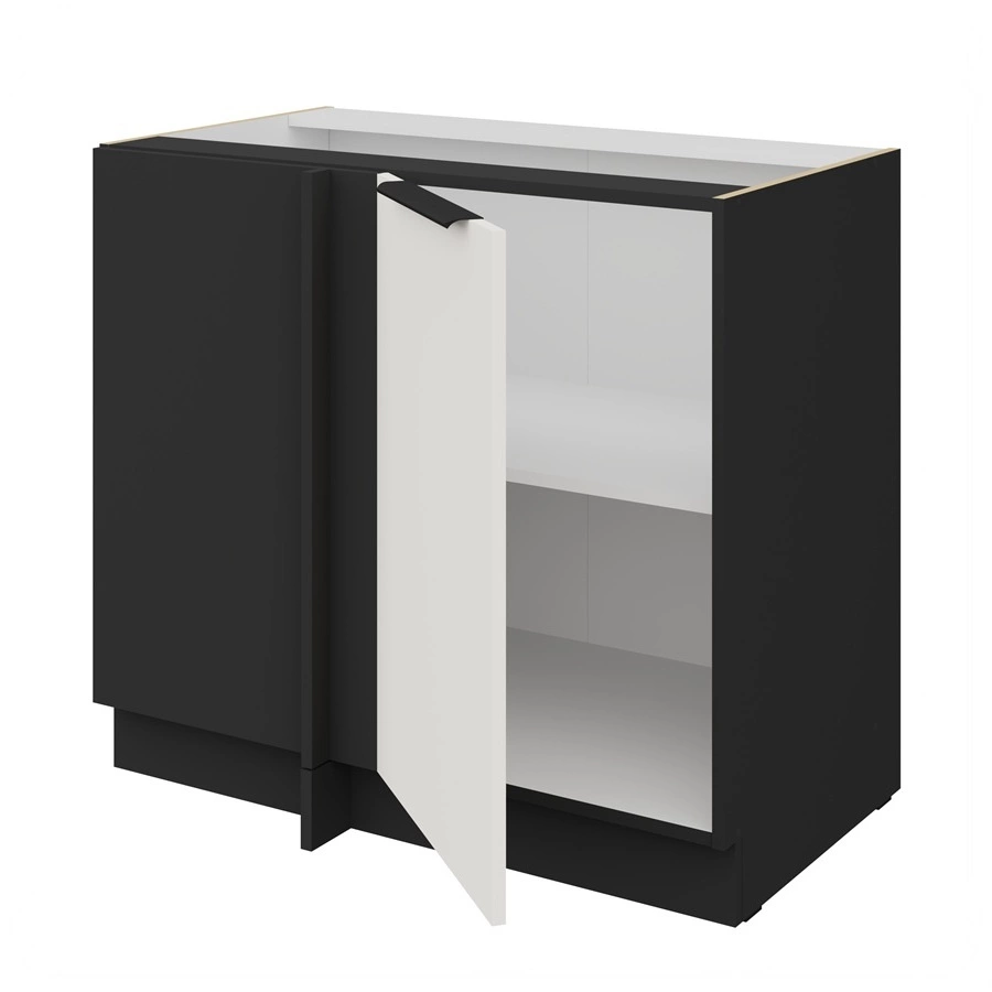 Szafka kuchenna narożna dostawiana Corato Bl w kolorze czarny / biały należy do kategorii mebli kuchennych modułowych, z których można utworzyć dowolne zestawy.