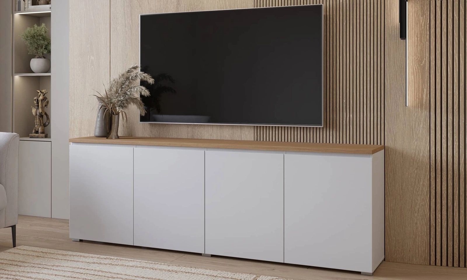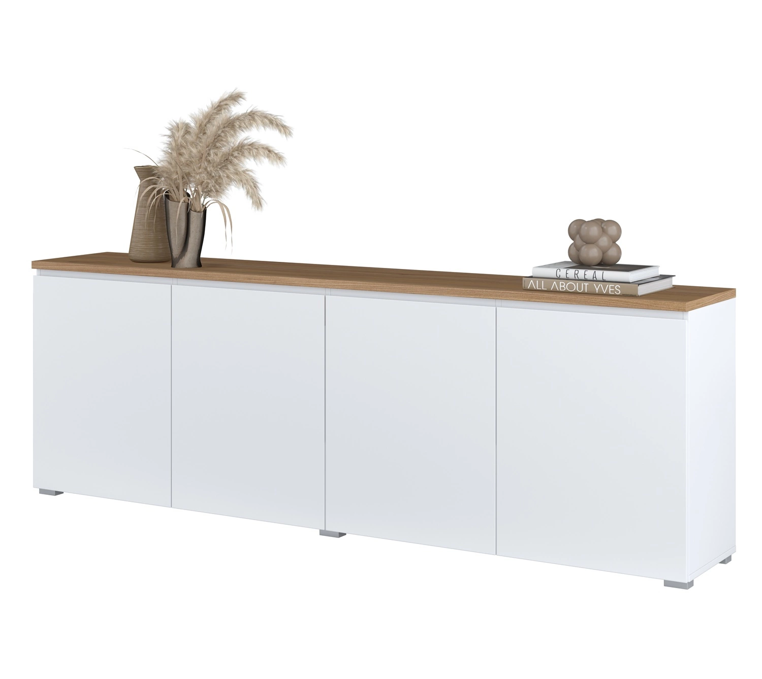 Komoda 200 cm Modo w kolorze biały / dąb mauvella to doskonała propozycja mebla dla miłośników minimalistycznych wnętrz.