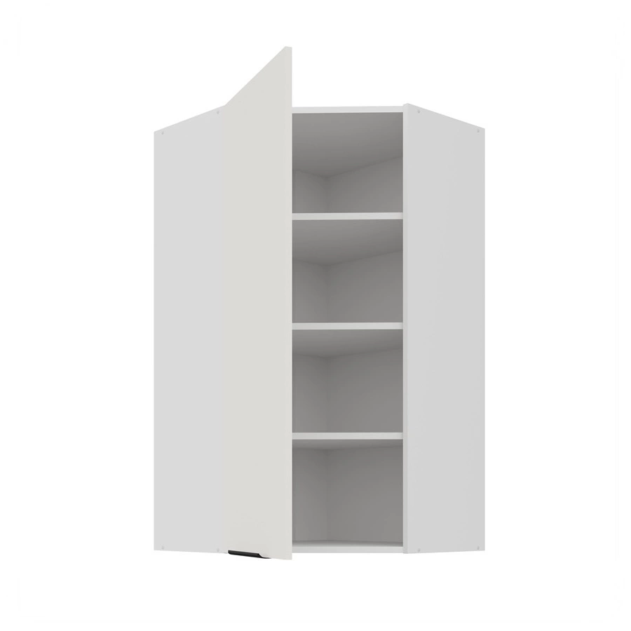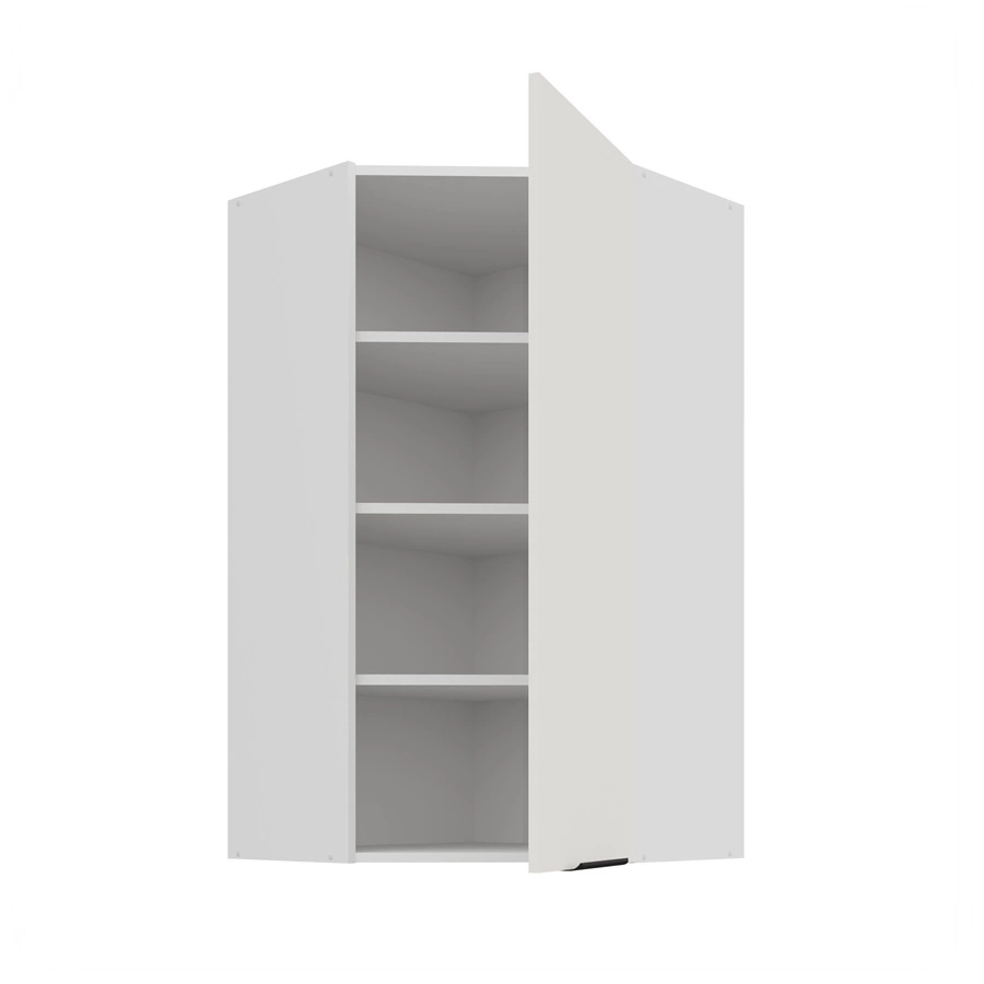 Szafka kuchenna narożna wisząca Corato Wh w kolorze białym należy do kategorii mebli kuchennych modułowych, z których można utworzyć dowolne zestawy.