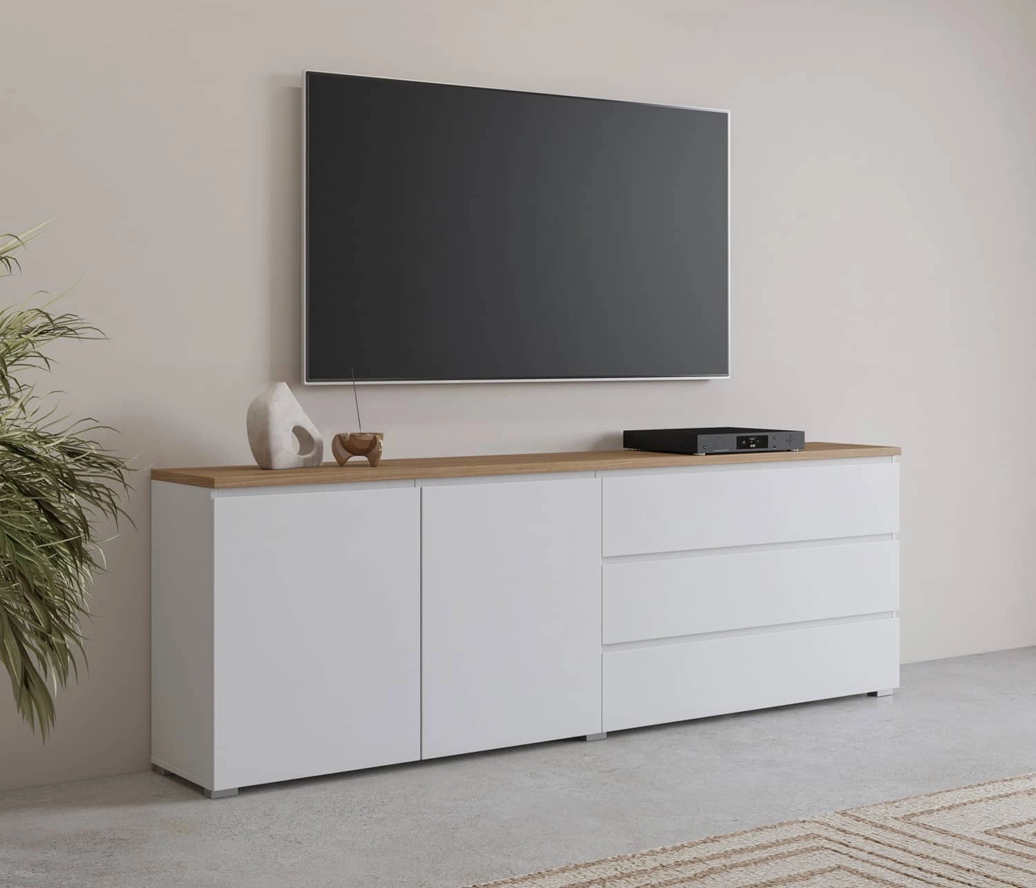 Komoda z szufladami Modo 200 cm w kolorze biały / dąb mauvella idealna do salonu