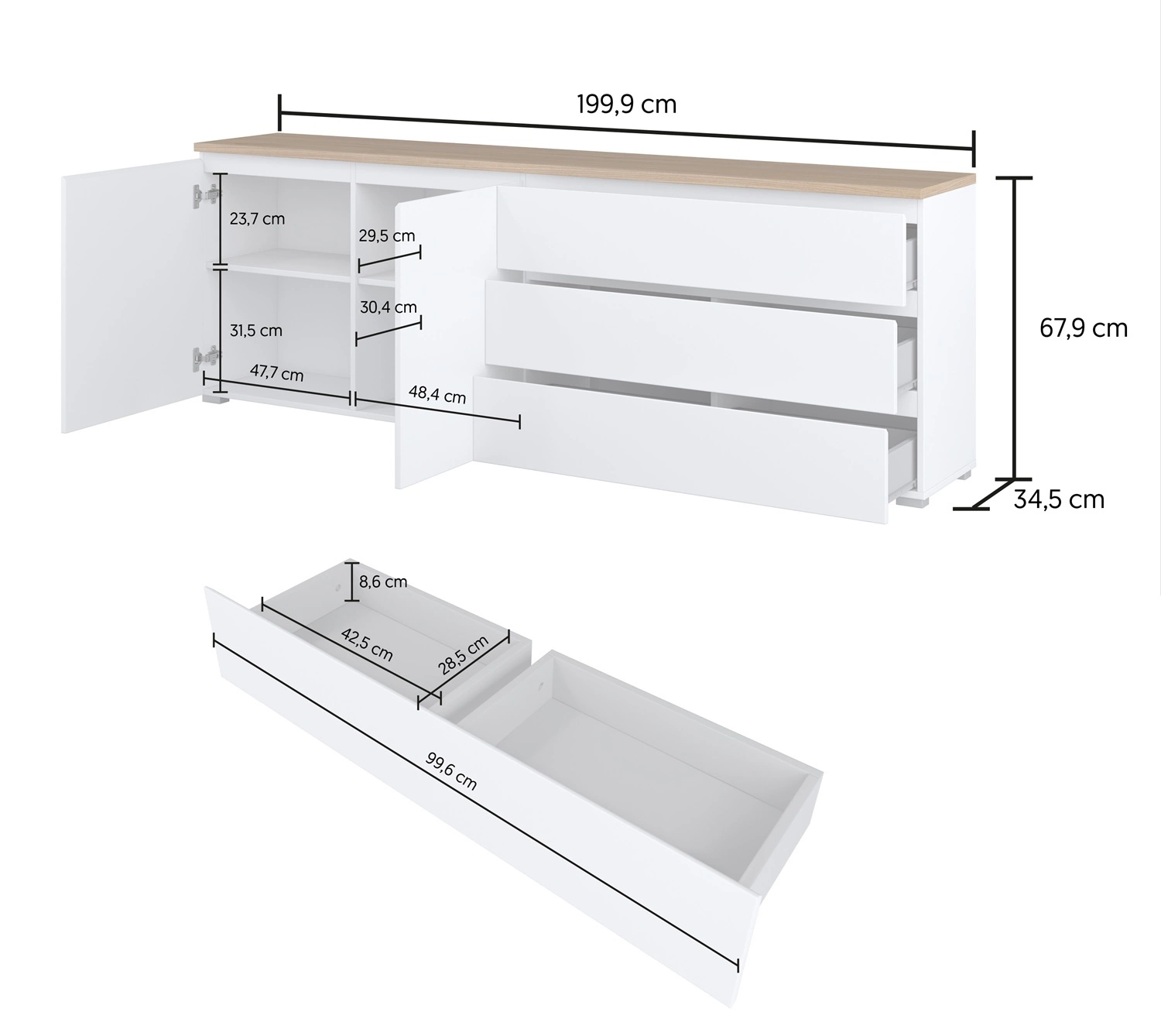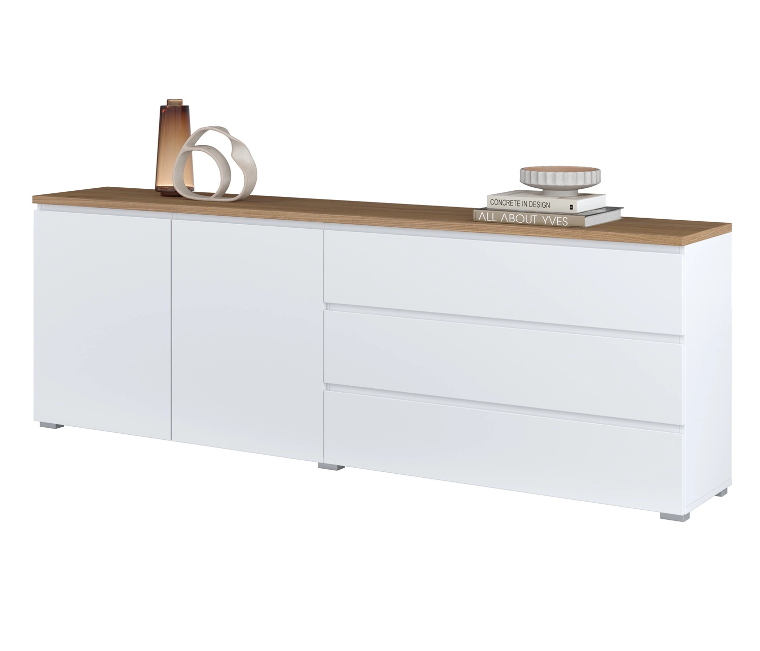 Komoda z szufladami Modo 200 cm w kolorze biały / dąb mauvella