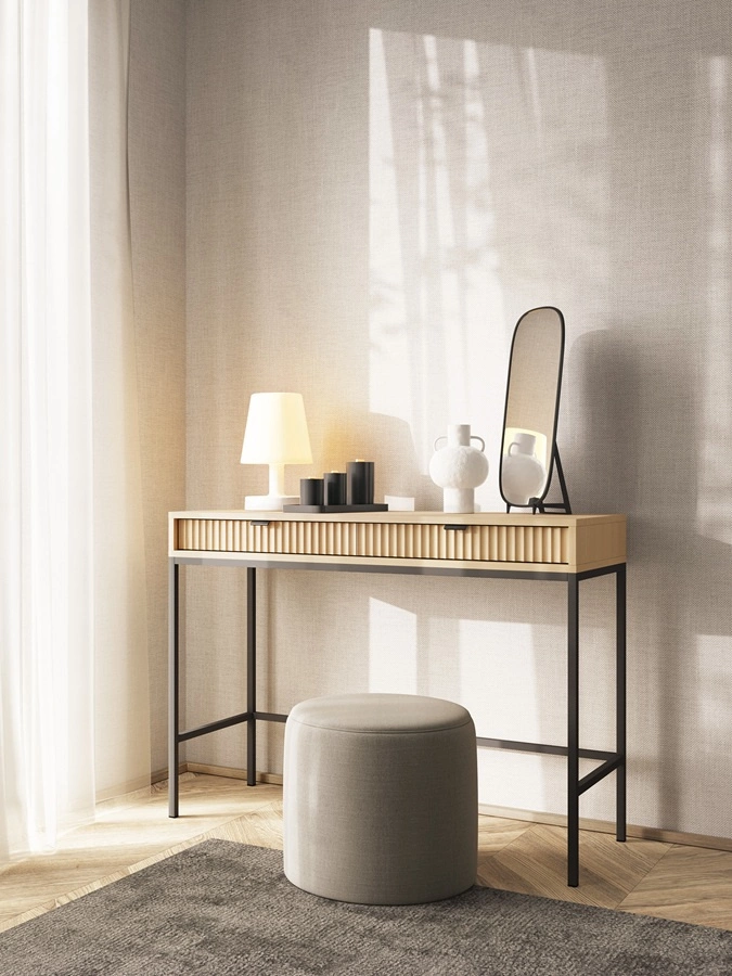 Konsola Lovro świetnie sprawdzi się jako toaletka, która ułatwi uporządkowanie damskich kosmetyków i drobiazgów.