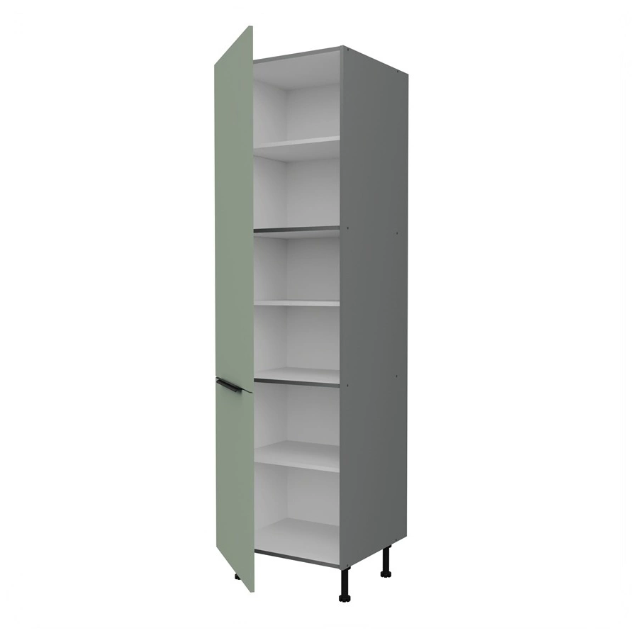 Półki słupka kuchennego posiadają trzystopniową regulacje wysokości, dzięki czemu można uzyskać miejsce na wysokie przedmioty. Drzwi są uniwersalne i można je zamontować po prawej lub po lewej stronie. Standardowym wyposażeniem szafki kuchennej są zawiasy z systemem cichego domykania. Spowalniacze zwiększają komfort i bezpieczeństwo użytkowania mebli. Słupek kuchenny jest wyposażony w regulowane nogi, które zapewniają stabilne ustawienie szafki.