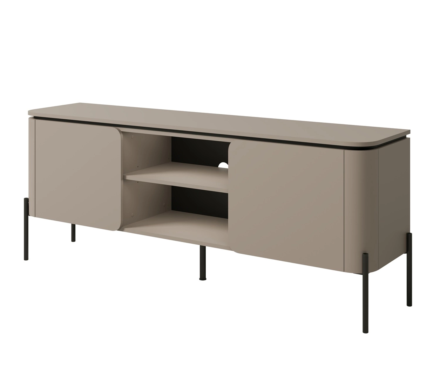 Zestaw mebli do salonu Belle ciemny beżowy stylowe meble o zaokrąglonym kształcie system otwierania push to open metalowe czarne nogi