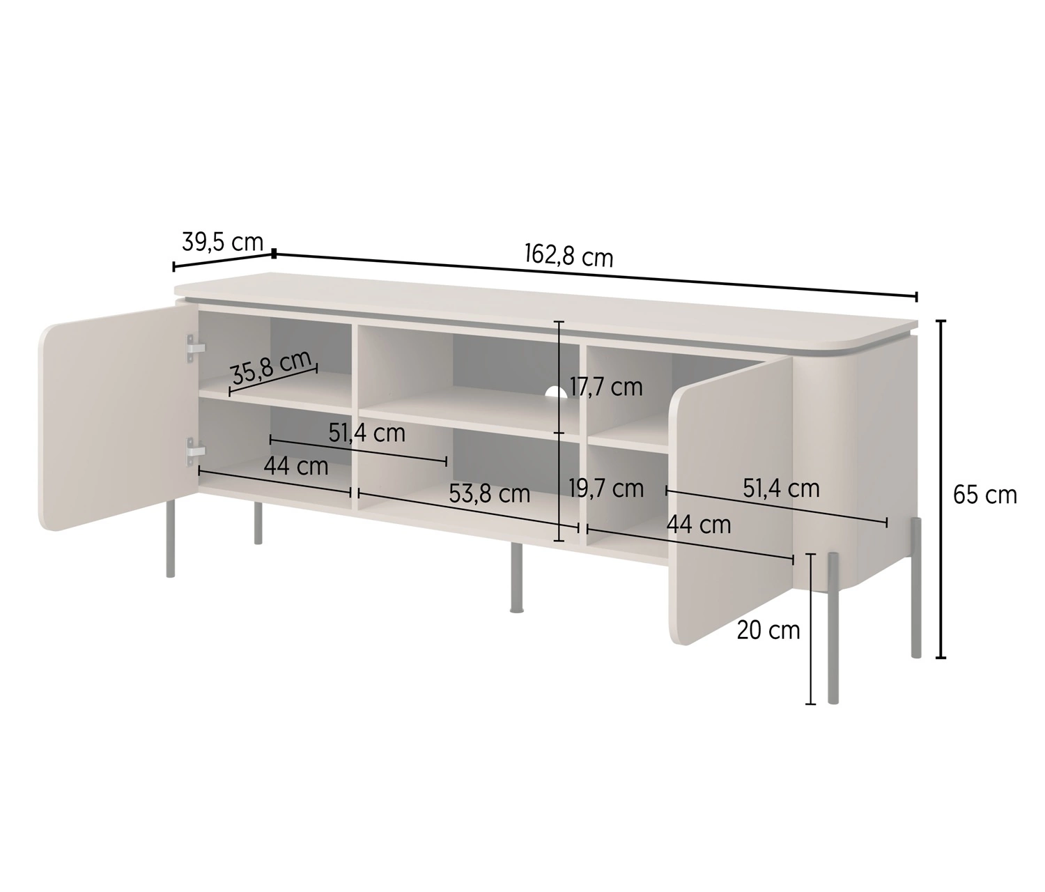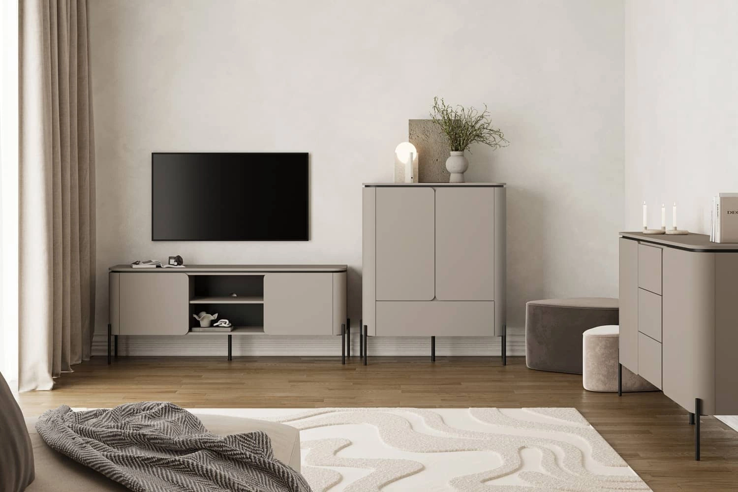 Zestaw mebli Belle został zaprojektowany w sposób funkcjonalny i użytkowy, oferując dużo miejsca do przechowywania. Pojemne szuflady oraz zamykane szafki mebli pomieszczą wszystkie rzeczy oraz niezbędne akcesoria. Meble do salonu zostały wykonane z solidnych materiałów, odpornych na uszkodzenia zapewniając niezawodność podczas codziennego użytkowania. Dodatkową zaletą mebli jest bezuchwytowy system otwierania drzwi oraz szuflad push to open. Zastosowany system umożliwi wygodne i komfortowe korzystanie z mebli. W szafce RTV subtelnie wysunięty front pełni także funkcję uchwytu.