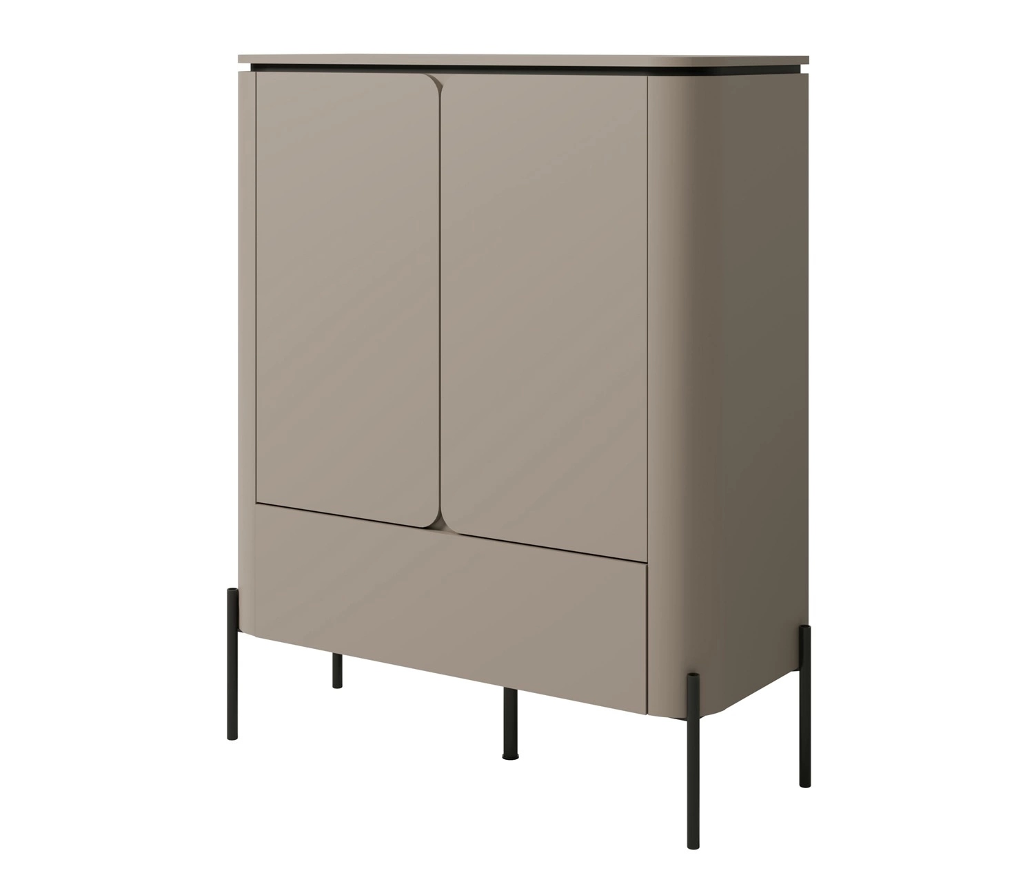Zestaw mebli Belle zachwyci wszystkich miłośników wyrafinowanych aranżacji. Meble wyróżniają się prostotą oraz elegancją, a także zaskakują szeroką funkcjonalnością. Oryginalna kolorystyka i owalny kształt stworzy niepowtarzalny klimat w każdym wnętrzu. Gładkie, bezuchwytowe wykończenie frontów sprawia, że kompozycja mebli jest spójna, zamknięta w minimalistycznym tonie. Niezwykle modny ciemny beżowy kolor oraz smukłe, metalowe nogi w kolorze czarnym podkreślają elegancką stylistykę kolekcji Belle. Unikatowe wzornictwo mebli sprawdzi się nawet w najbardziej wymagającym wnętrzu.