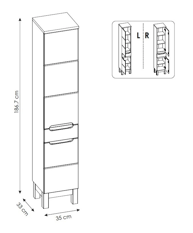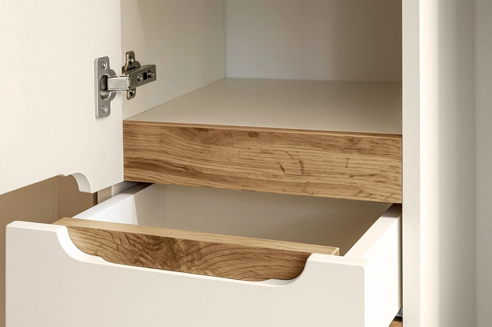 Słupek do łazienki jest wyposażony w 2 drzwi oraz 1 szuflady z systemem cichego domykania. Zastosowany system zwiększa komfort i bezpieczeństwo użytkowania mebli. Drzwi są uniwersalne i można je zamontować po prawej lub po lewej stronie. Wszystkie elementy kolekcji Bali wyróżniają się starannym wykonaniem i dbałością o detale, gwarantując estetyczny wygląd i długotrwałą satysfakcję z użytkowania.
