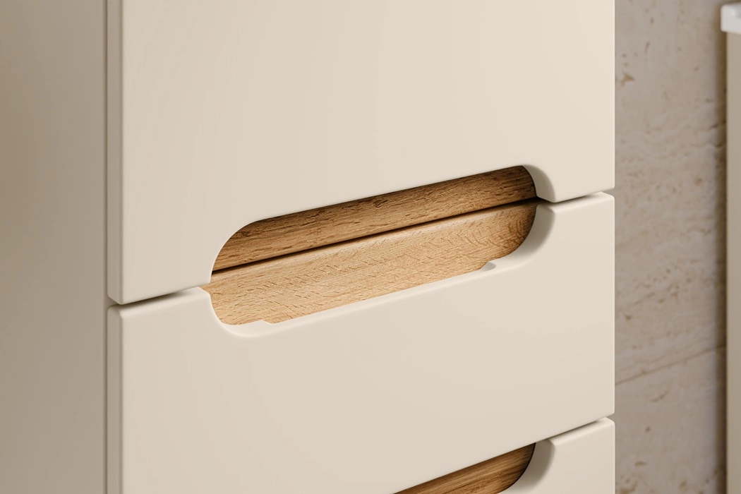 Szafki łazienkowe z kolekcji Bali zachwycą najbardziej wymagających miłośników minimalizmu w eleganckim wydaniu. Imponujące wzornictwo połączone z solidnymi korpusami w kaszmirowym odcieniu oraz drewnianymi detalami sprawia, że meble staną się centralnym elementem wystroju łazienki. Solidne, wysokie nogi każdej szafki stojącej z kolekcji Bali pozwala uzyskać zachwycający efekt, a dodatkowo ułatwia utrzymanie czystości w łazience. Dodatkowym atutem mebli do łazienki są frezowane uchwyty, które są wyjątkowo praktyczne i wpisują się w aktualne trendy wnętrzarskie.