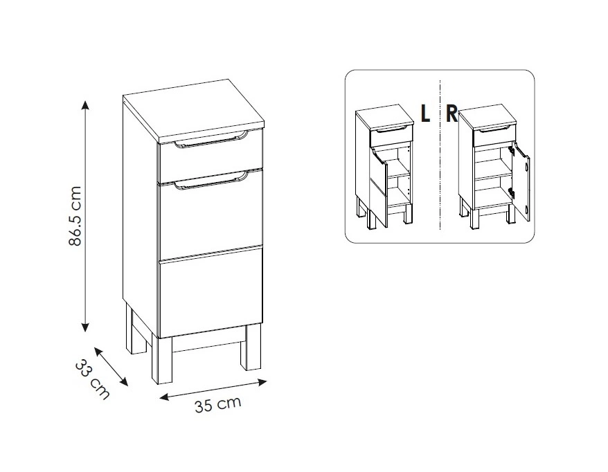 Szafki łazienkowe są wyposażone w zawiasy oraz prowadnice z systemem cichego domykania. Zastosowany system zwiększa komfort i bezpieczeństwo użytkowania mebli. Drzwi szafek są uniwersalne i można je zamontować po prawej lub po lewej stronie. Konstrukcja szafki pod umywalkę umożliwia użycie umywalki wpuszczanej. Wszystkie elementy kolekcji Bali wyróżniają się starannym wykonaniem i dbałością o detale, gwarantując estetyczny wygląd i długotrwałą satysfakcję z użytkowania.