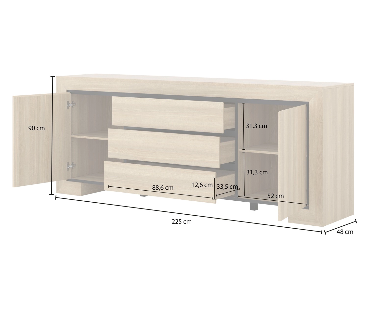 Komoda z szufladami Cuba 225 cm to idealny mebel, który wkomponuje się do każdego salonu lub pokoju dziennego.