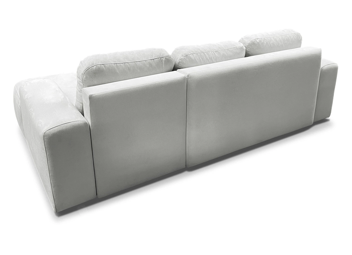 Narożnik z funkcją spania Bovec to połączenie funkcjonalności z niezwykle elegancką formą. Oryginalna konstrukcja narożnika pokryta została tkaniną typu szenil Spring 1118. Narożnik charakteryzuje się nietuzinkowym wyglądem podkreślonym obłym kształtem, szerokimi podłokietnikami oraz wysoką jakością wykonania. Stylowa bryła została przełamana ozdobnymi przeszyciami zdobiąc siedzisko i boczki narożnika. Gustowne poduchy oparciowe zapewnią jeszcze większy komfort i wygodę użytkowania tego niezwykle modernistycznego narożnika. Nowoczesne wzornictwo narożnika idealnie sprawdzi się w każdym wnętrzu w Twoim ulubionym stylu.