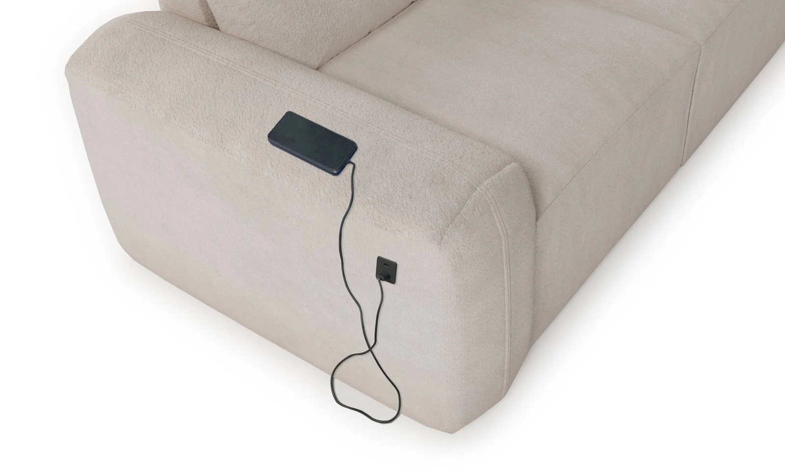 Dodatki tego mebla, które docenią wszyscy użytkownicy to funkcja spania, pojemnik na pościel oraz gniazdo ładowania USB w boczku sofy.