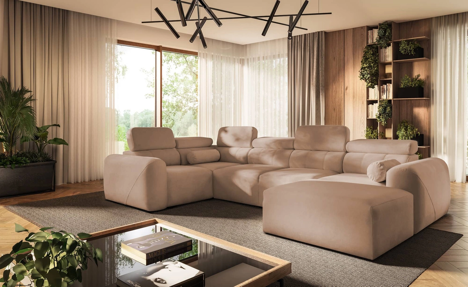Narożnik z funkcją spania Cantare IV to połączenie funkcjonalności z niezwykle stylową i elegancką formą. Całość bryły pokryta została tkaniną typu plusz Torra 41023. Narożnik charakteryzuje się ciekawą konstrukcją, wysoką jakością wykonania oraz dodatkiem w postaci dekoracyjnych poduszek, które zapewnią jeszcze większy komfort i wygodę użytkowania tego niezwykle modernistycznego narożnika. Subtelne, ozdobne przeszycia podkreślają elegancki charakter mebla, czyniąc go stylowym dopełnieniem każdej przestrzeni. Nowoczesne wzornictwo narożnika spełni najbardziej wygórowane oczekiwania pod względem funkcjonalności jak i designu.