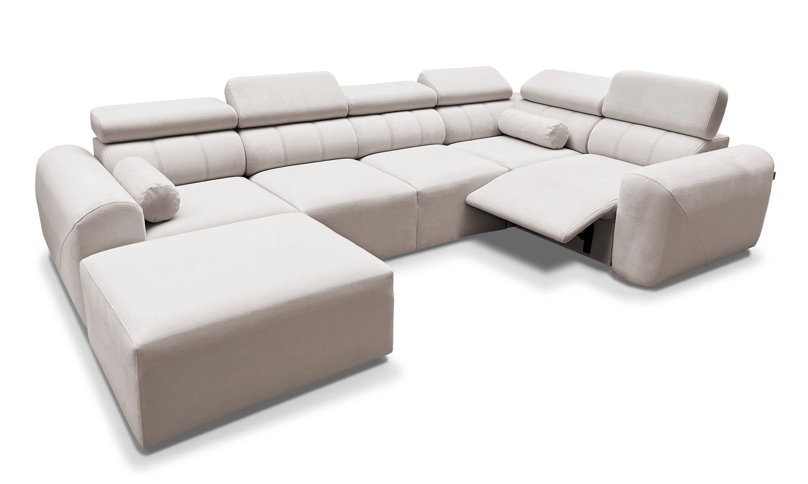 Narożnik z funkcją spania Cantare IV Lux to połączenie funkcjonalności z niezwykle stylową i elegancką formą. Całość bryły pokryta została tkaniną typu plusz Torra 41063. Narożnik charakteryzuje się ciekawą konstrukcją, wysoką jakością wykonania oraz dodatkiem w postaci dekoracyjnych poduszek, które zapewnią jeszcze większy komfort i wygodę użytkowania tego niezwykle modernistycznego narożnika. Subtelne, ozdobne przeszycia podkreślają elegancki charakter mebla, czyniąc go stylowym dopełnieniem każdej przestrzeni. Kolejną zaletą narożnika jest elektrycznie podnoszony podnóżek, który zapewni wygodny i relaksujący wypoczynek. To doskonałe rozwiązanie, które umożliwia wykorzystanie przestrzeni w pełni, bez konieczności poszukiwań dodatkowych mebli. Nowoczesne wzornictwo narożnika spełni najbardziej wygórowane oczekiwania pod względem funkcjonalności jak i designu.
