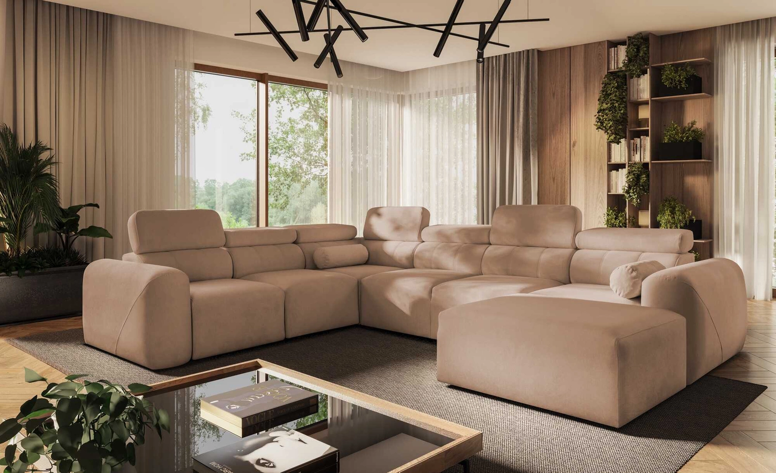 Narożnik z funkcją spania Cantare VIII to połączenie funkcjonalności z niezwykle stylową i elegancką formą. Całość bryły pokryta została tkaniną typu plusz Torra 41023. Narożnik charakteryzuje się ciekawą konstrukcją, wysoką jakością wykonania oraz dodatkiem w postaci dekoracyjnych poduszek, które zapewnią jeszcze większy komfort i wygodę użytkowania tego niezwykle modernistycznego narożnika. Subtelne, ozdobne przeszycia podkreślają elegancki charakter mebla, czyniąc go stylowym dopełnieniem każdej przestrzeni. Nowoczesne wzornictwo narożnika spełni najbardziej wygórowane oczekiwania pod względem funkcjonalności jak i designu.