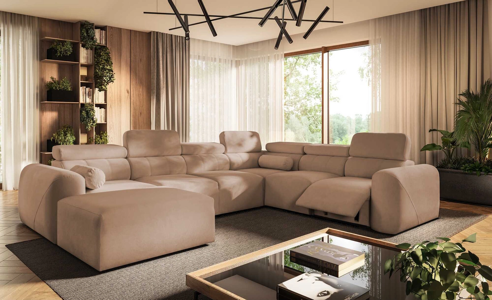 Narożnik z funkcją spania Cantare VIII Lux to połączenie funkcjonalności z niezwykle stylową i elegancką formą. Całość bryły pokryta została tkaniną typu plusz Torra 41023. Narożnik charakteryzuje się ciekawą konstrukcją, wysoką jakością wykonania oraz dodatkiem w postaci dekoracyjnych poduszek, które zapewnią jeszcze większy komfort i wygodę użytkowania tego niezwykle modernistycznego narożnika. Subtelne, ozdobne przeszycia podkreślają elegancki charakter mebla, czyniąc go stylowym dopełnieniem każdej przestrzeni. Kolejną zaletą narożnika jest elektrycznie podnoszony podnóżek, który zapewni wygodny i relaksujący wypoczynek. To doskonałe rozwiązanie, które umożliwia wykorzystanie przestrzeni w pełni, bez konieczności poszukiwań dodatkowych mebli. Nowoczesne wzornictwo narożnika spełni najbardziej wygórowane oczekiwania pod względem funkcjonalności jak i designu.