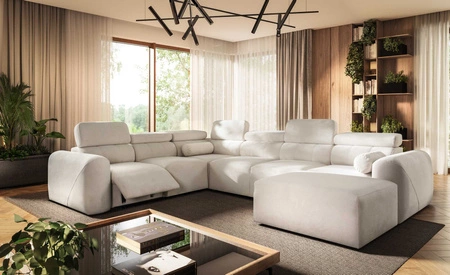 Narożnik z funkcją spania Cantare VIII Lux to połączenie funkcjonalności z niezwykle stylową i elegancką formą. Całość bryły pokryta została tkaniną typu plusz Torra 41063. Narożnik charakteryzuje się ciekawą konstrukcją, wysoką jakością wykonania oraz dodatkiem w postaci dekoracyjnych poduszek, które zapewnią jeszcze większy komfort i wygodę użytkowania tego niezwykle modernistycznego narożnika. Subtelne, ozdobne przeszycia podkreślają elegancki charakter mebla, czyniąc go stylowym dopełnieniem każdej przestrzeni. Kolejną zaletą narożnika jest elektrycznie podnoszony podnóżek, który zapewni wygodny i relaksujący wypoczynek. To doskonałe rozwiązanie, które umożliwia wykorzystanie przestrzeni w pełni, bez konieczności poszukiwań dodatkowych mebli. Nowoczesne wzornictwo narożnika spełni najbardziej wygórowane oczekiwania pod względem funkcjonalności jak i designu.