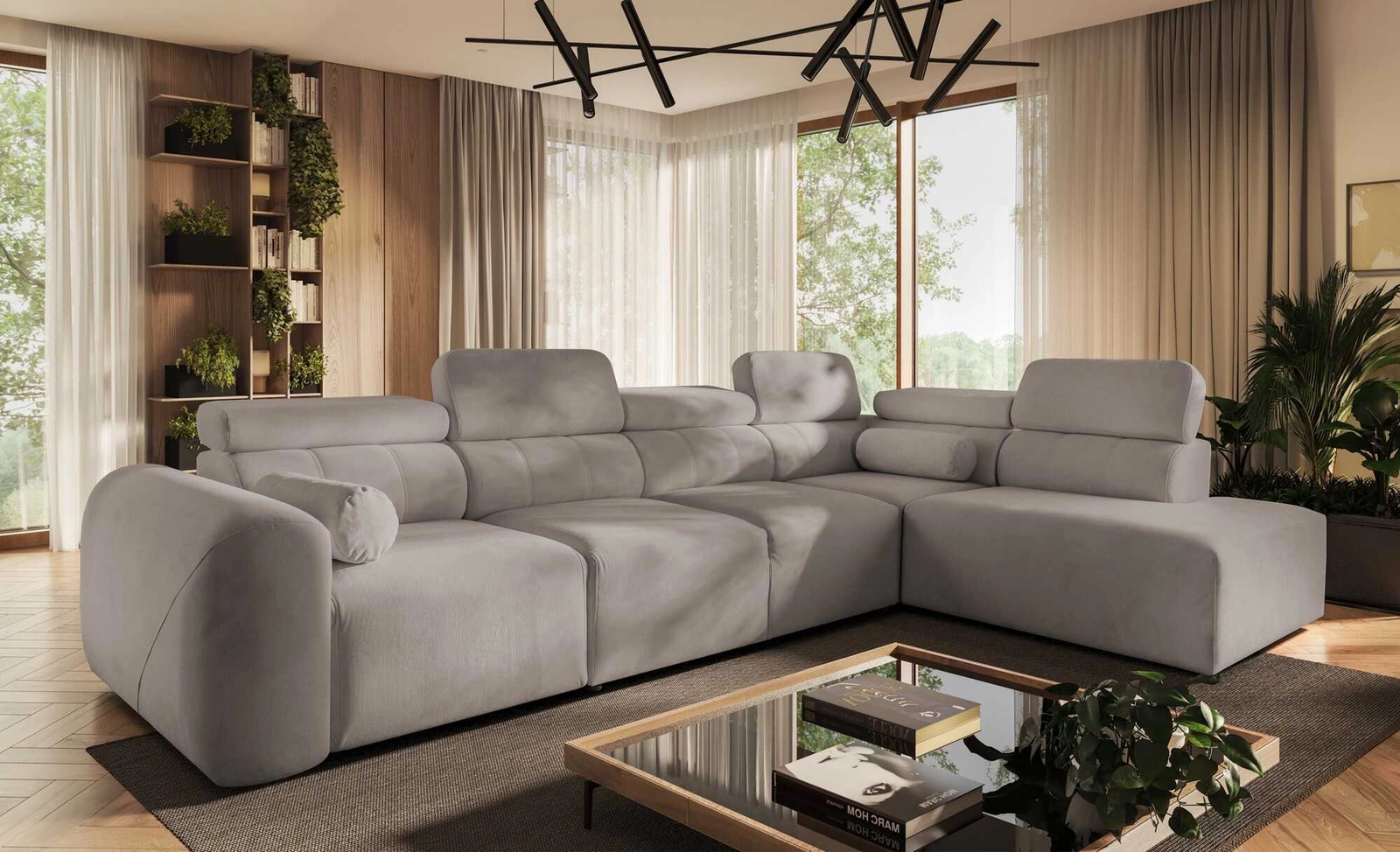 Narożnik z funkcją spania Cantare XI szary popiel prawostronny komfortowy narożnik o nowoczesnym designie pluszowa tkanina