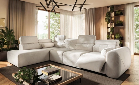 Narożnik z funkcją spania Cantare XI Lux kość słoniowa lewostronny komfortowy narożnik do salonu z podnoszonym podnóżkiem miękka tkanina
