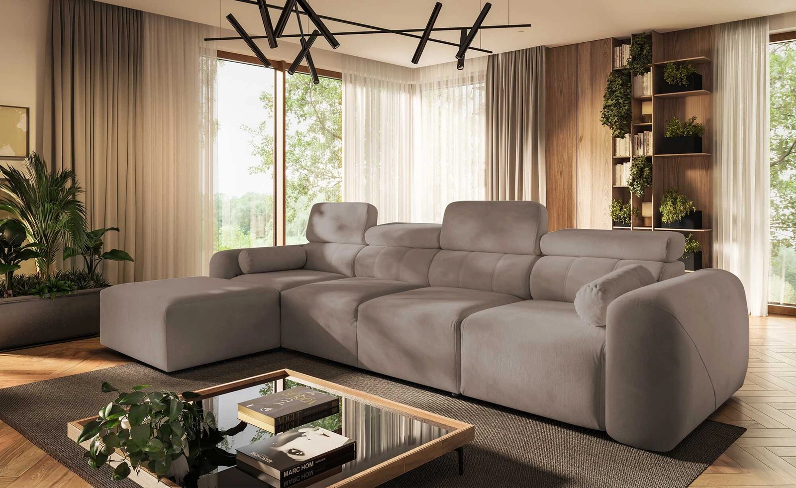 Narożnik z funkcją spania Cantare XII ciemny beż lewostronny estetyczny i niezwykle komfortowy narożnik z pojemnikiem na pościel