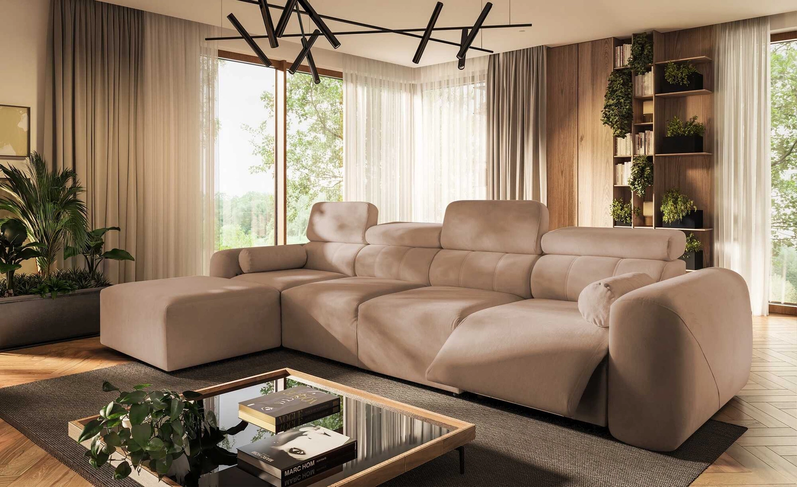 Narożnik z funkcją spania Cantare XII Lux to połączenie funkcjonalności z niezwykle stylową i elegancką formą. Całość bryły pokryta została tkaniną typu plusz Torra 41023. Narożnik charakteryzuje się ciekawą konstrukcją, wysoką jakością wykonania oraz dodatkiem w postaci dekoracyjnych poduszek, które zapewnią jeszcze większy komfort i wygodę użytkowania tego niezwykle modernistycznego narożnika. Subtelne, ozdobne przeszycia podkreślają elegancki charakter mebla, czyniąc go stylowym dopełnieniem każdej przestrzeni. Kolejną zaletą narożnika jest elektrycznie podnoszony podnóżek, który zapewni wygodny i relaksujący wypoczynek. To doskonałe rozwiązanie, które umożliwia wykorzystanie przestrzeni w pełni, bez konieczności poszukiwań dodatkowych mebli. Nowoczesne wzornictwo narożnika spełni najbardziej wygórowane oczekiwania pod względem funkcjonalności jak i designu.