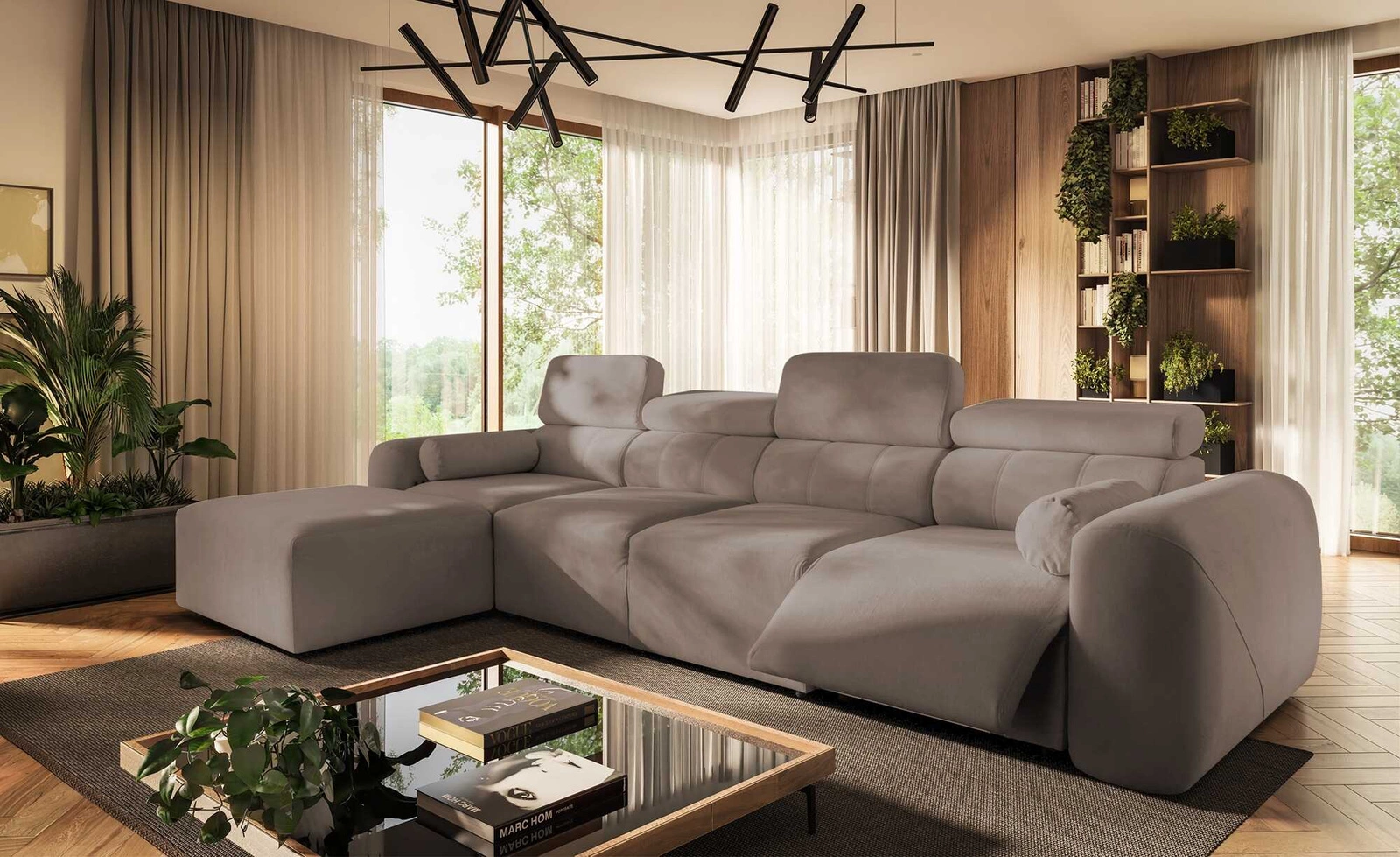 Narożnik z funkcją spania Cantare XII Lux ciemny beż lewostronny estetyczny i niezwykle komfortowy narożnik z podnoszonym podnóżkiem