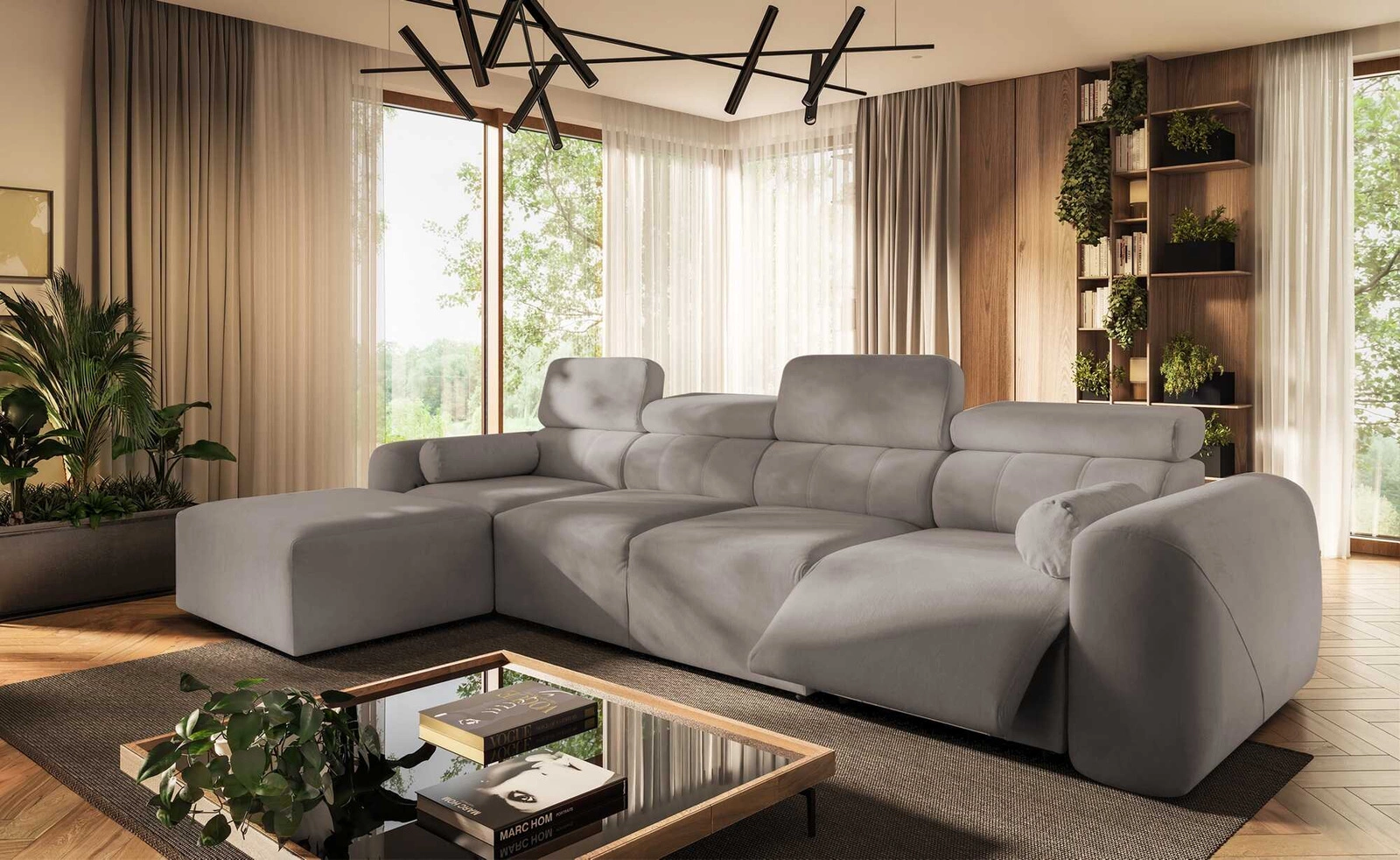 Narożnik z funkcją spania Cantare XII Lux szary popiel lewostronny estetyczny i niezwykle komfortowy narożnik z podnoszonym podnóżkiem