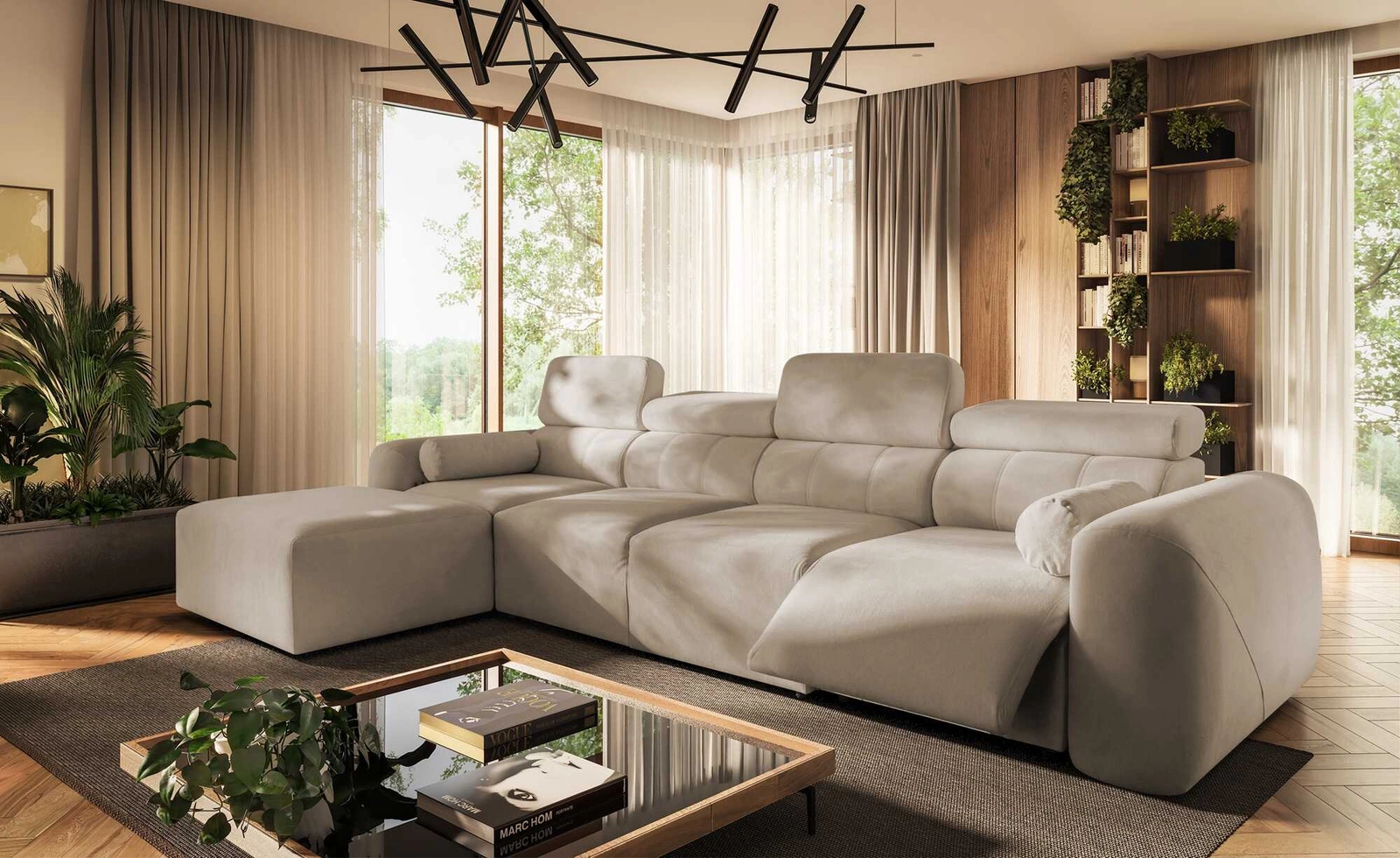 Narożnik z funkcją spania Cantare XII Lux beżowy lewostronny estetyczny i niezwykle komfortowy narożnik z podnoszonym podnóżkiem