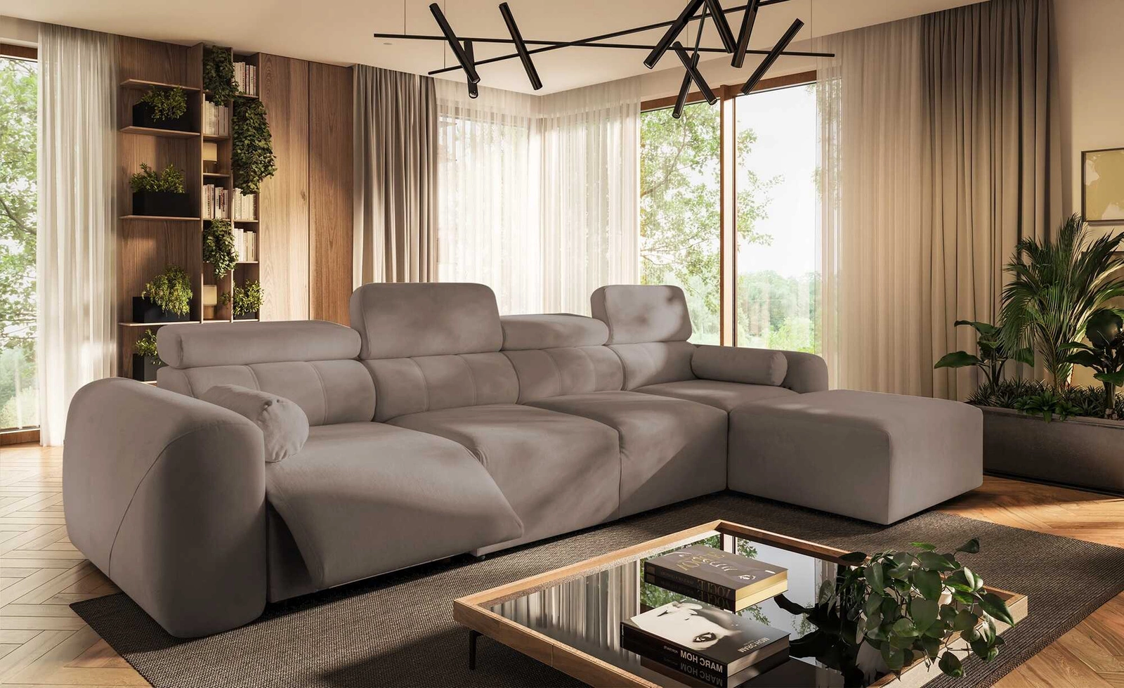 Narożnik z funkcją spania Cantare XII Lux ciemny beż prawostronny estetyczny i niezwykle komfortowy narożnik z podnoszonym podnóżkiem