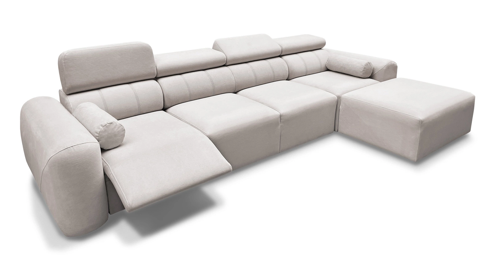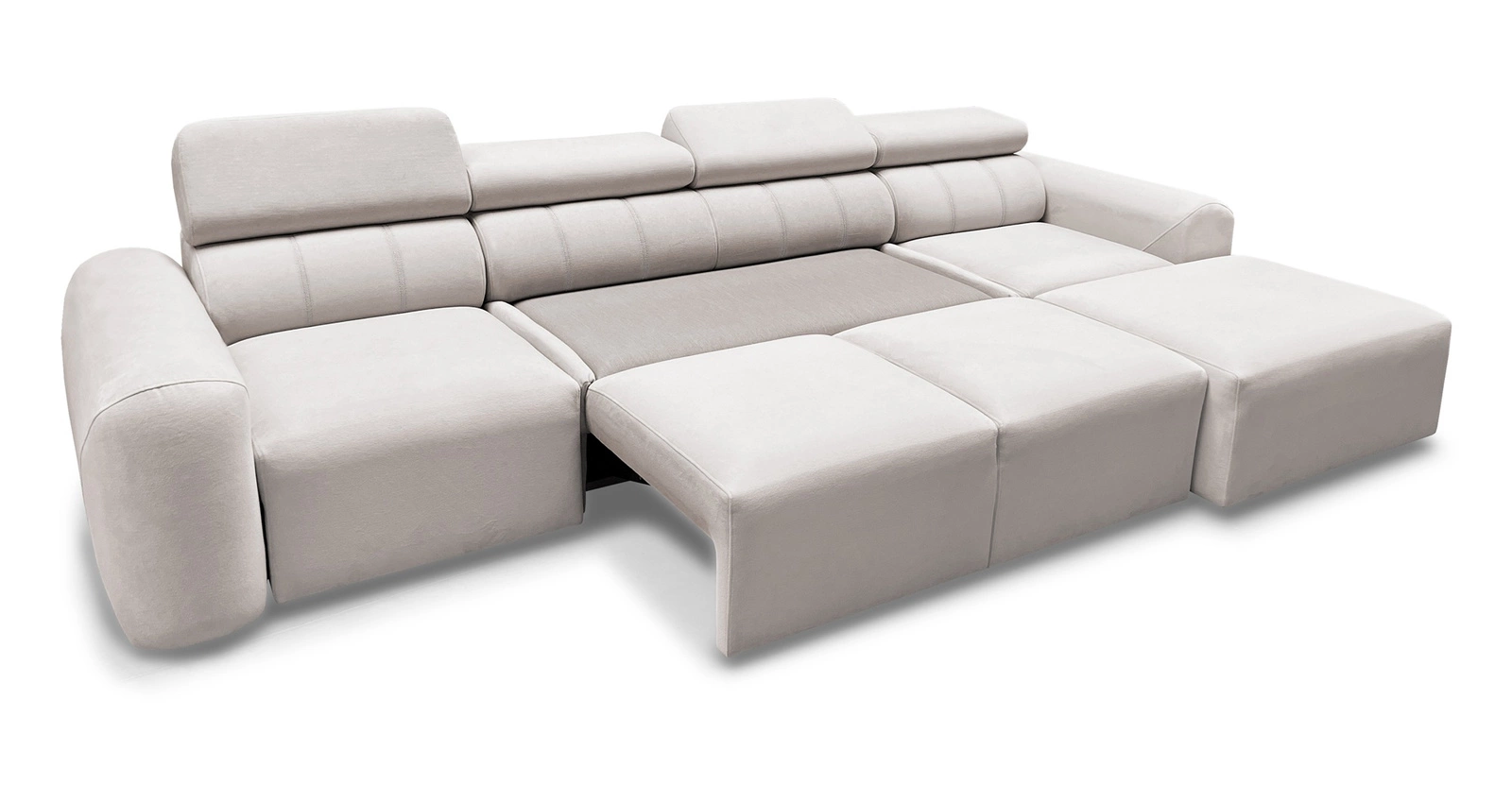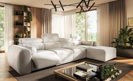 Narożnik z funkcją spania Cantare XII Lux kość słoniowa prawostronny estetyczny i niezwykle komfortowy narożnik z podnoszonym podnóżkiem