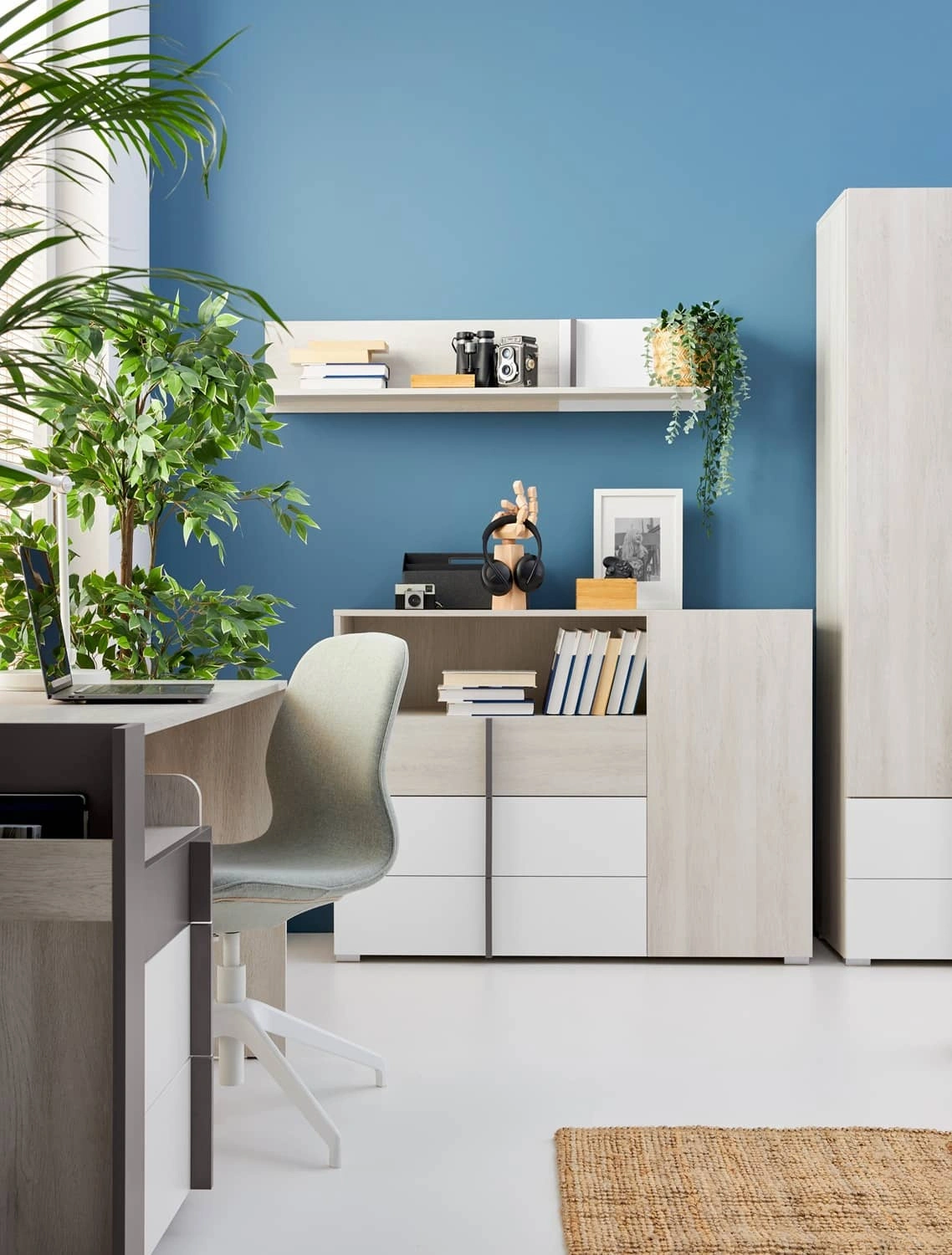 Komoda wykonana została z wysokiej jakości płyty laminowanej, która charakteryzuje się odpornością na wpływ czynników zewnętrznych takich jak obicia, uderzenia i niefortunne zadrapania. Komoda z szufladami Remona została zaprojektowana w sposób funkcjonalny i użytkowy, oferując dużo miejsca do przechowywania. Pojemne szuflady oraz zamykane szafki pomieszczą wszystkie rzeczy oraz niezbędne akcesoria. Otwarta półka to idealne miejsce na podręczniki lub ulubione książki. Precyzyjne wykończenie i dbałość o detale sprawiają, że komoda z szufladami Remona zachowa swój piękny wygląd na wiele lat, nie tracąc przy tym na funkcjonalność.