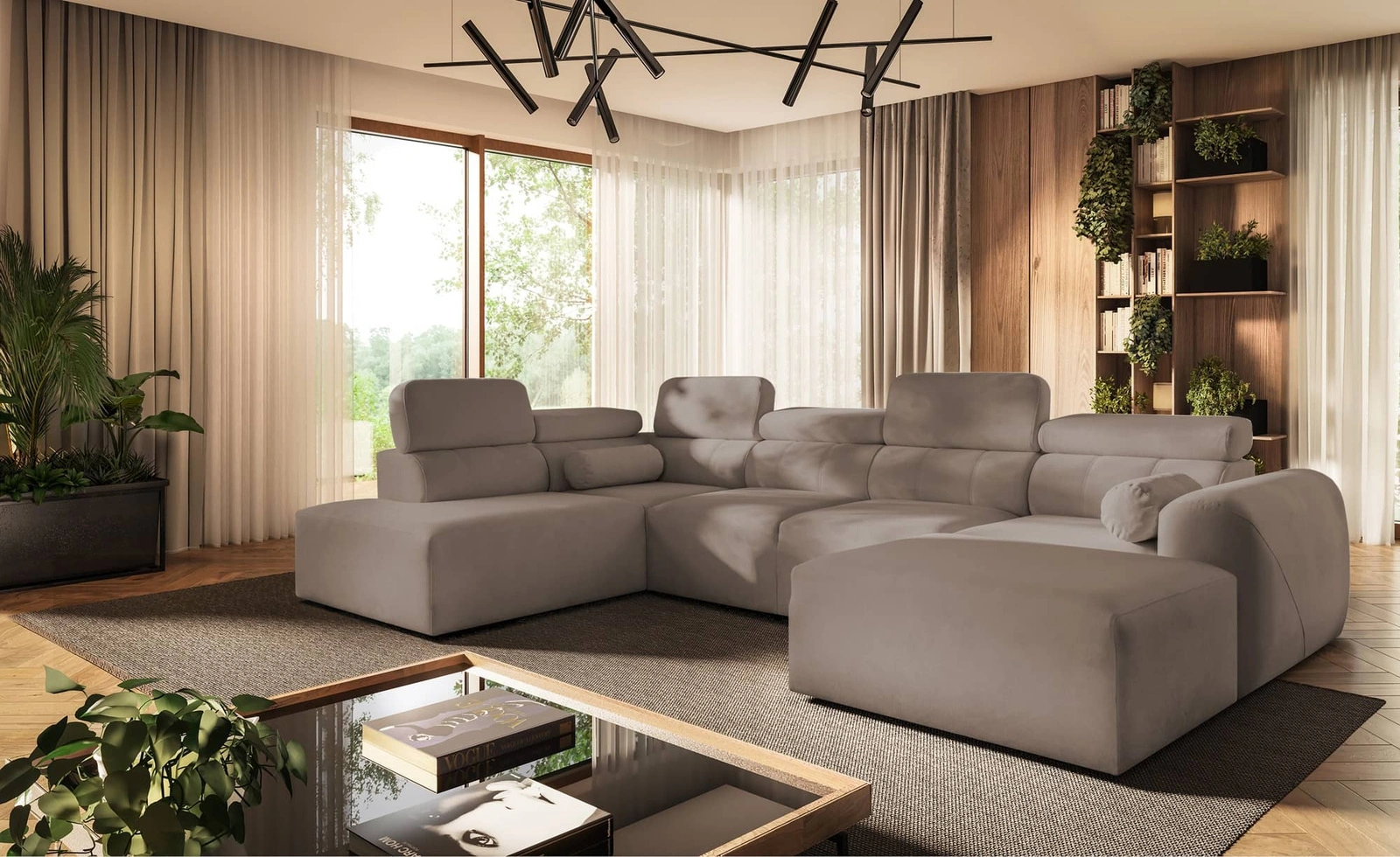 - Narożnik Cantare VI cechuje się nowoczesnym i stylowym designem. Miękka, jednolita tapicerka oraz dodatki w formie subtelnych przeszyć nadają wnętrzu subtelnej elegancji i przytulności. Łatwy w obsłudze system rozkładania to kolejny atut bryły.