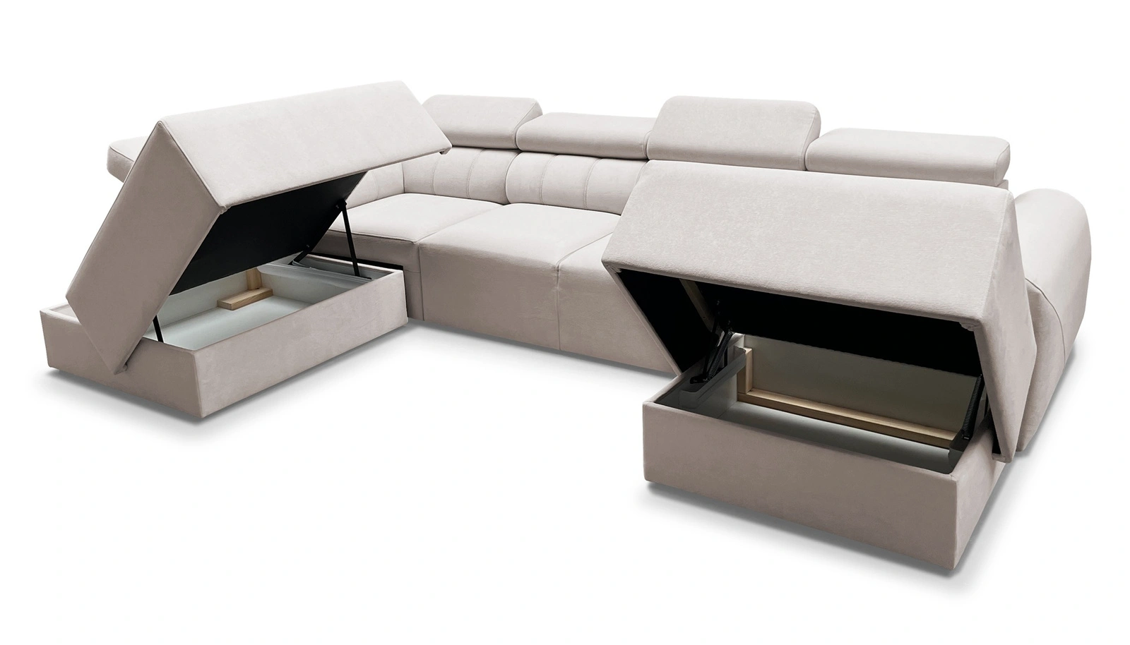 Dodatki tego mebla, które docenią wszyscy użytkownicy to regulowane zagłówki, funkcja spania oraz pojemniki na pościel.