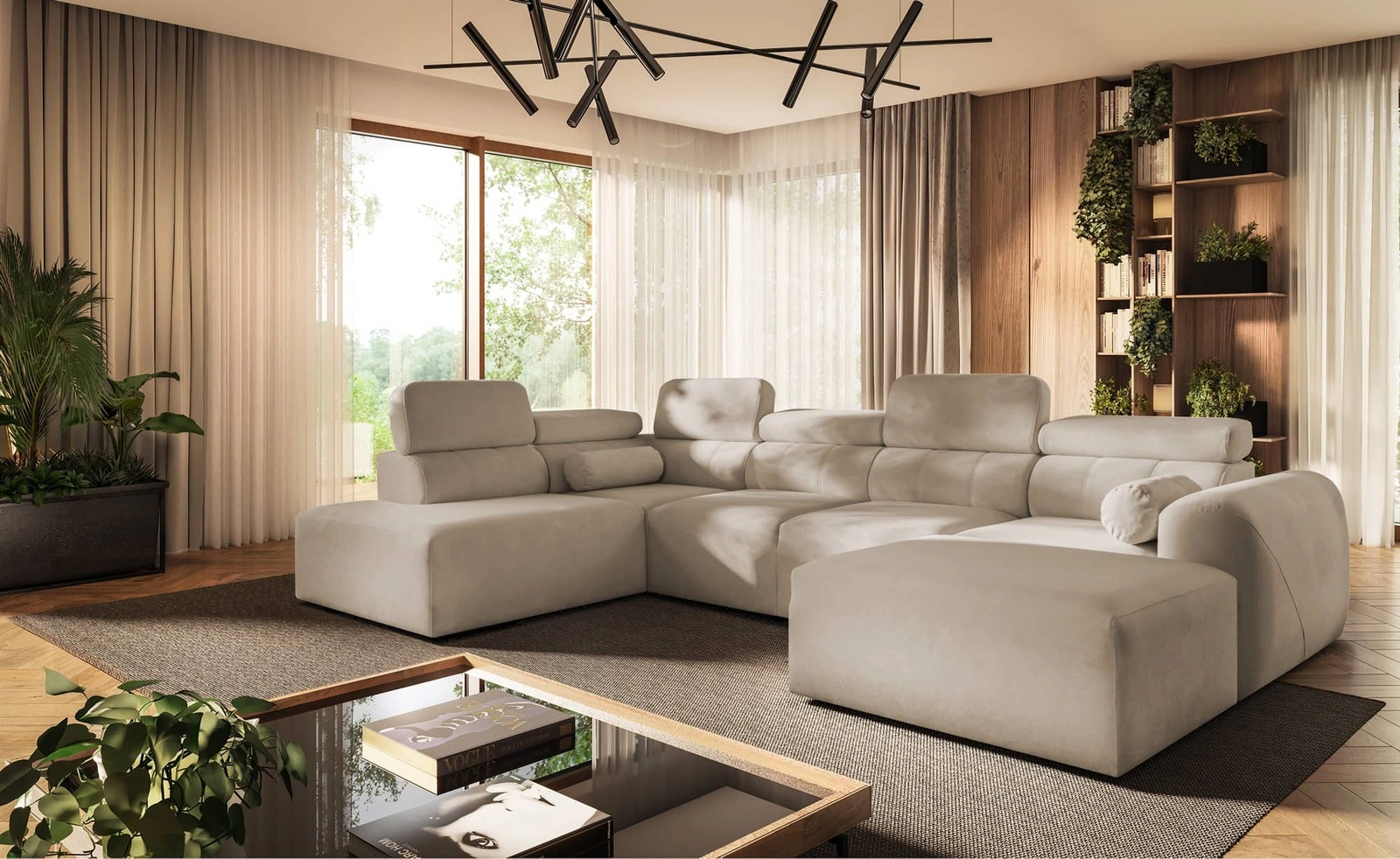 - Narożnik Cantare VI cechuje się nowoczesnym i stylowym designem. Miękka, jednolita tapicerka oraz dodatki w formie subtelnych przeszyć nadają wnętrzu subtelnej elegancji i przytulności. Łatwy w obsłudze system rozkładania to kolejny atut bryły.