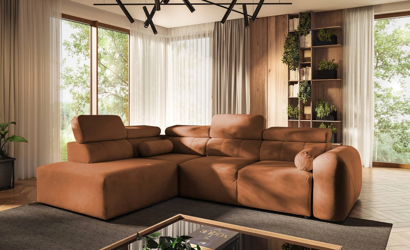 Narożnik Cantare VII w kolorze ceglastym to niezwykle funkcjonalny mebel o stylowym wykończeniu.