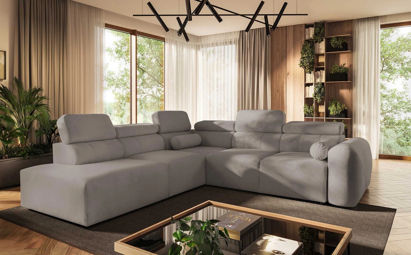 Narożnik z funkcją spania Cantare IX szary popiel lewostronny komfortowy narożnik rozkładany nowoczesny design pluszowa tkanina