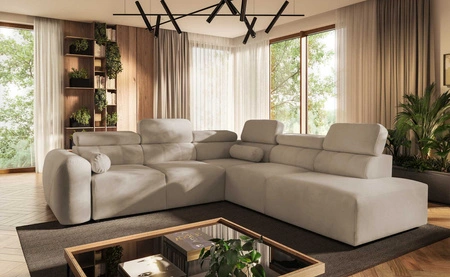 Narożnik z funkcją spania Cantare IX beżowy prawostronny komfortowy narożnik rozkładany nowoczesny design pluszowa tkanina