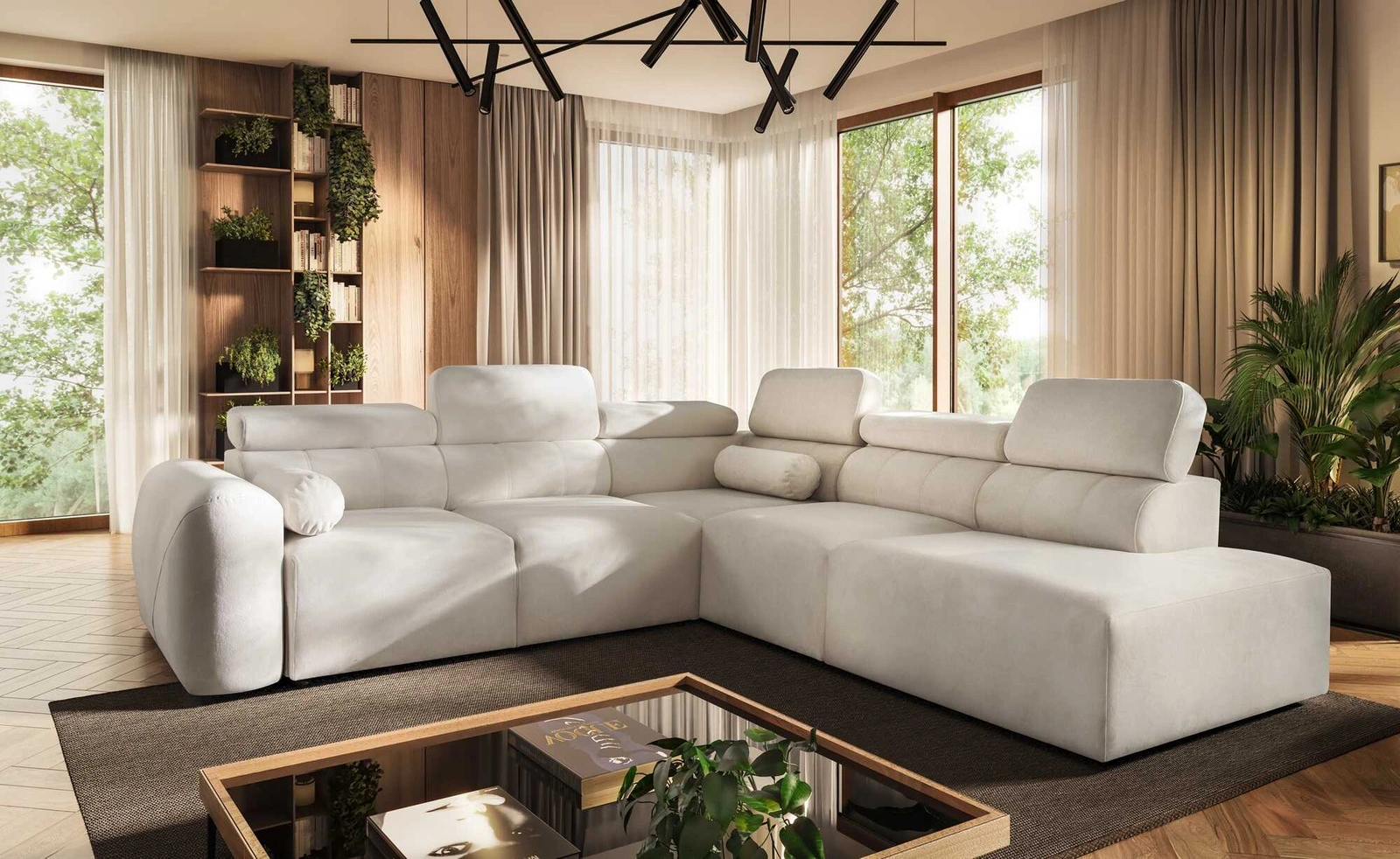 Detal narożnika z funkcją spania Cantare IX Narożnik z regulowanymi zagłówkami