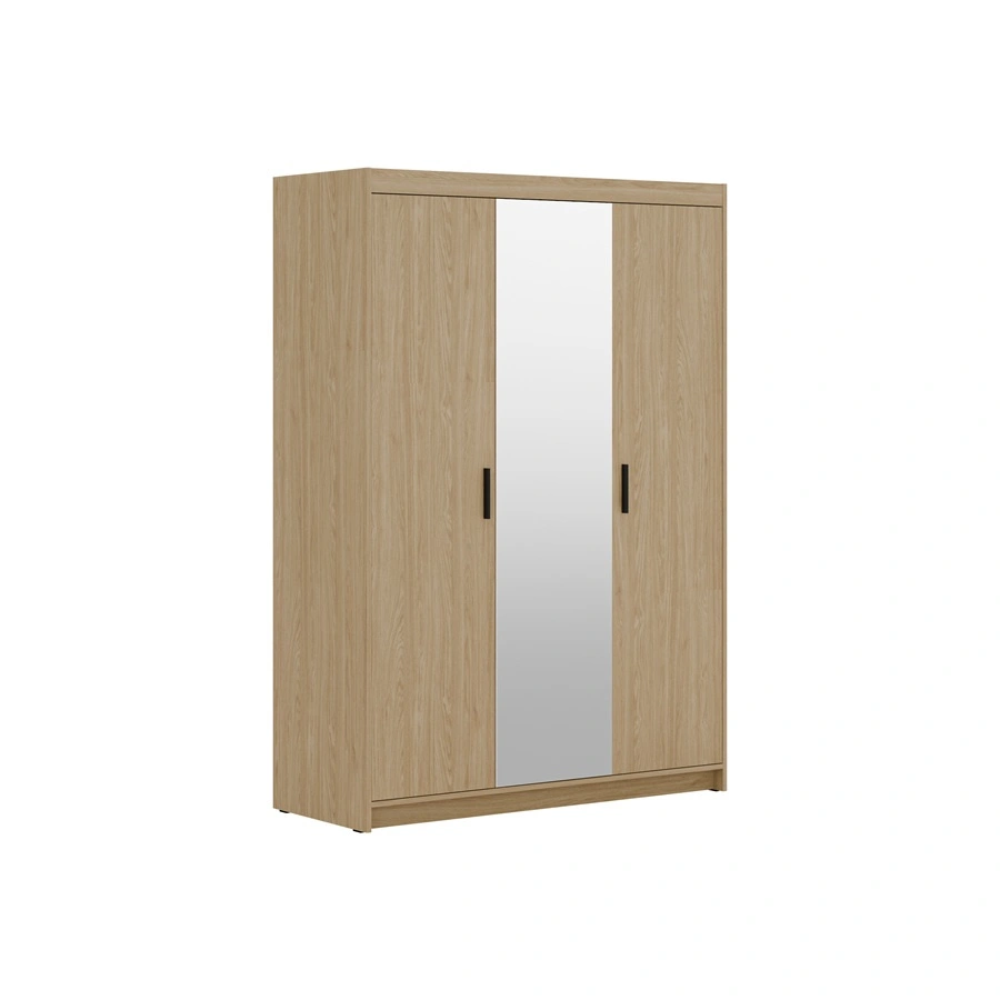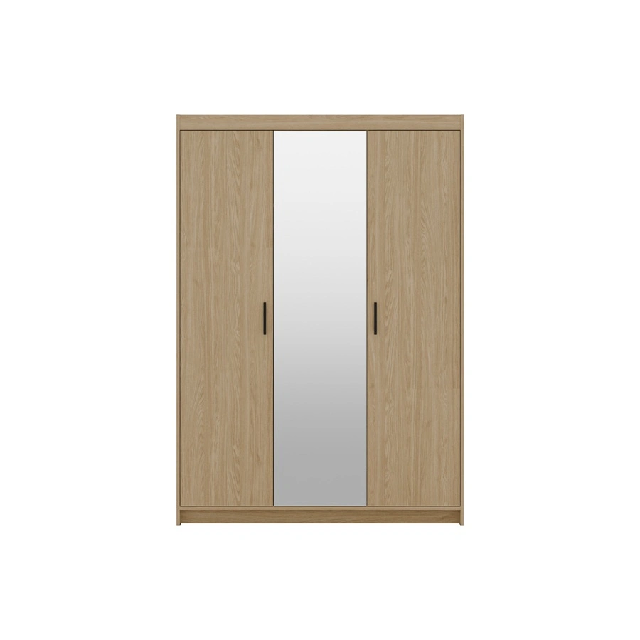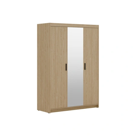 Szafa jest skonstruowana z 3 drzwi. Szafa gwarantuje komfortowe i bezproblemowe korzystanie oraz trwałość całego mebla przez wiele lat użytkowania. Połączenie dębu w naturalnym odcieniu z czarnymi uchwytami sprawia, że szafa na ubrania z powodzeniem sprawdzi się jako szafa do sypialni, jako szafa do przedpokoju lub szafa do pokoju dziecięcego. Szafy z lustrem Rene będą również świetnym wyborem do pokoju niemowlęcego. Doskonale sprawdzi się także w roli garderoby do przedpokoju.